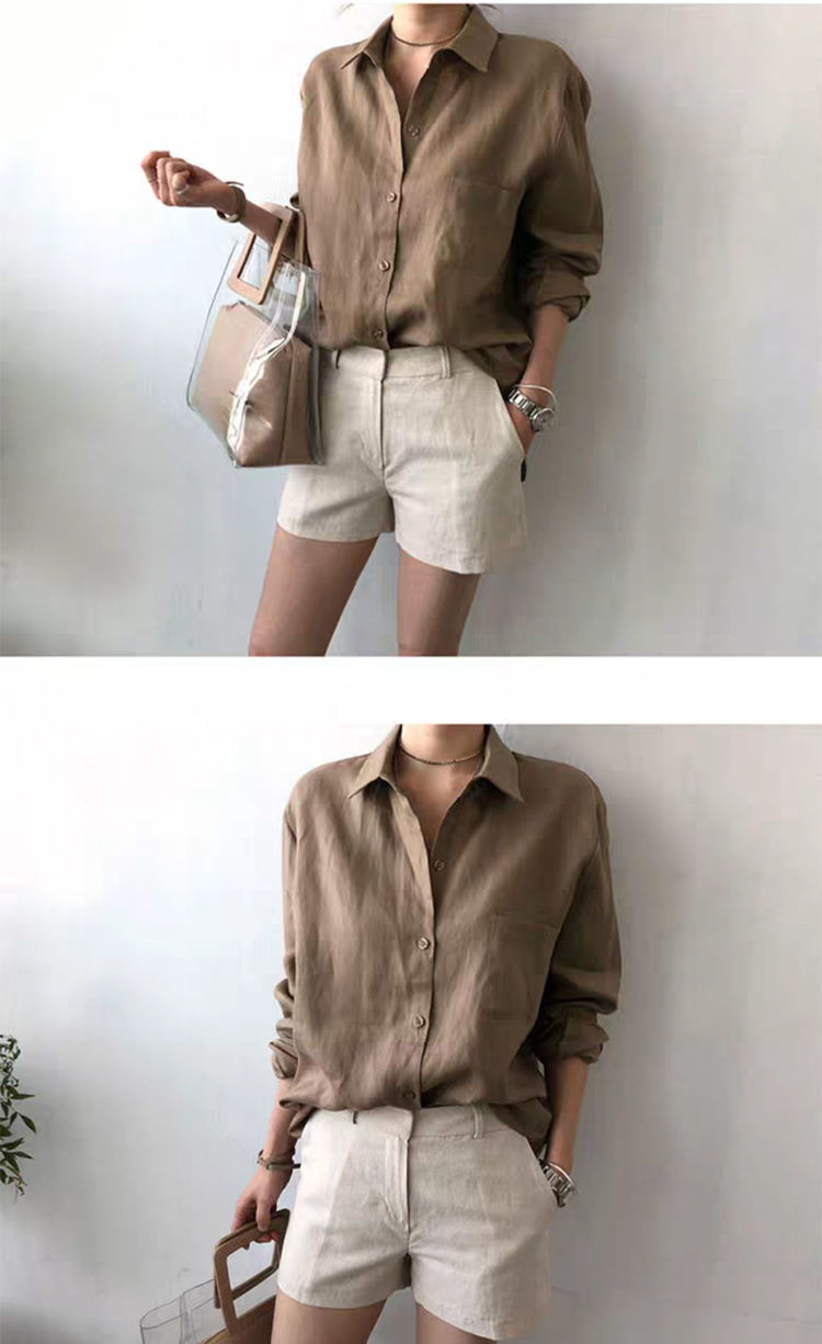 7502 # 봄과 가을 한국식 새로운 홍콩 스타일 루즈하고 다재다능한 캐주얼 셔츠
