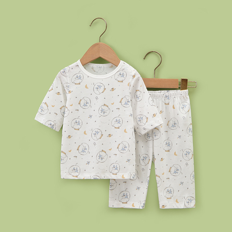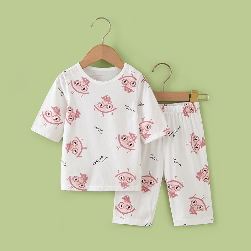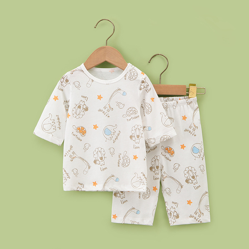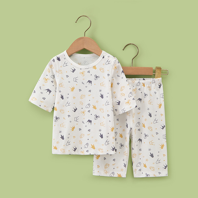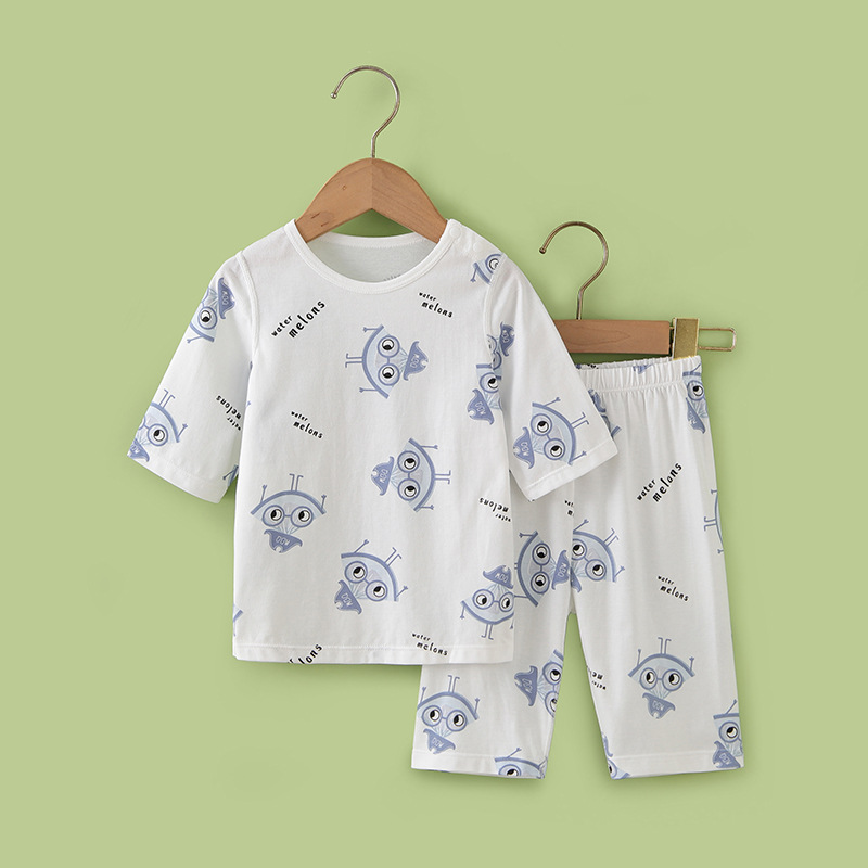 여름 새로운 세트 7 점 슬리브 라운드 넥 풀오버 세트 인쇄 아기 세트 가정 옷 아기 에어컨 옷