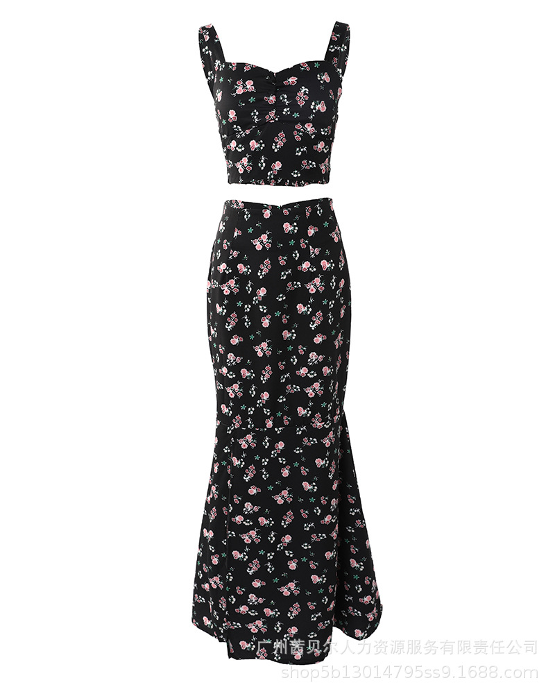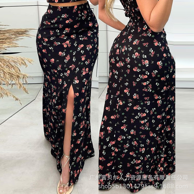 HDZ0270 여성복 유럽 및 미국 신상품 꽃무늬 슬릿 롱스커트 세트 ODS1538 우아한 출퇴근룩