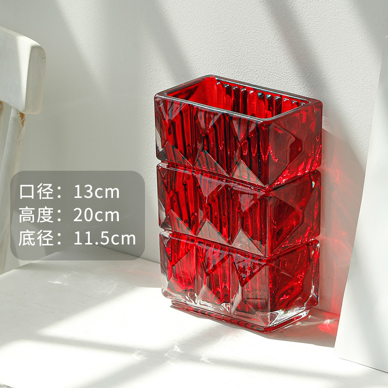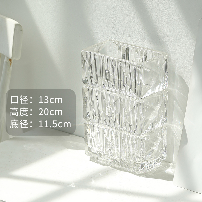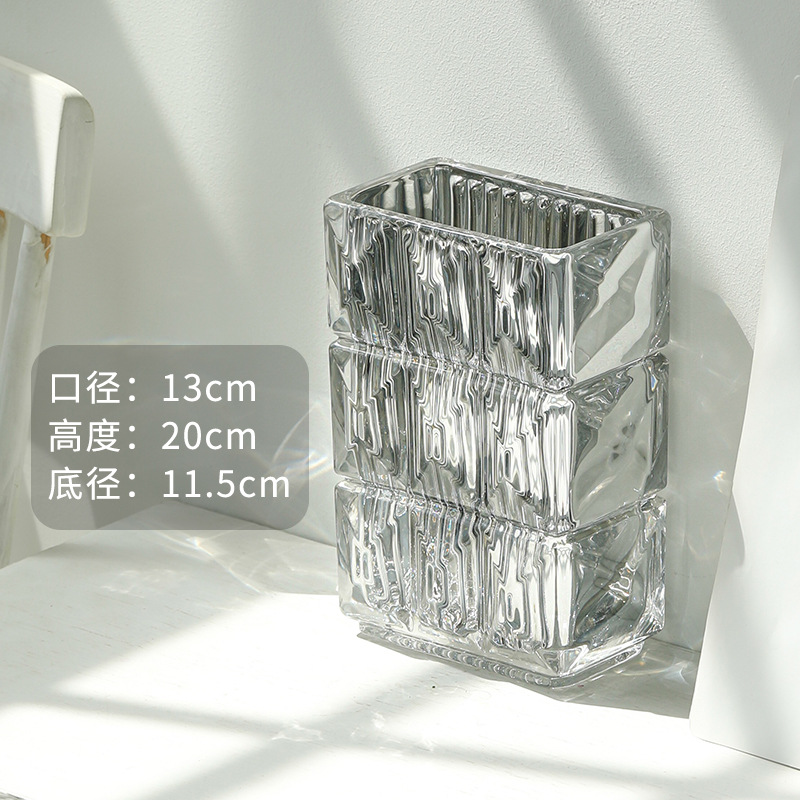 두꺼운 사각형 고급 크리스탈 유리 꽃병, 두꺼운 거실 현관 장식 장식품, 심플한 생화/드라이플라워 꽃병