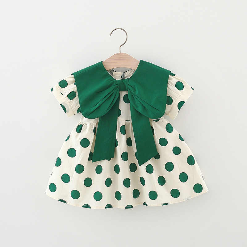 소녀 원피스 여름 어린이 의류 2022 새로운 활 옷깃 퍼프 소매 간단한 도트 인쇄 공주 원피스스토어 가기