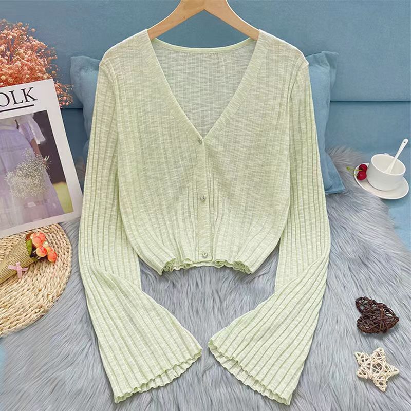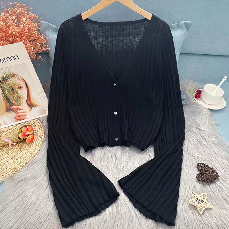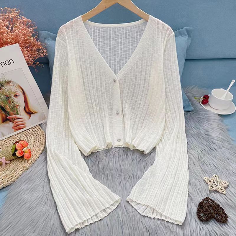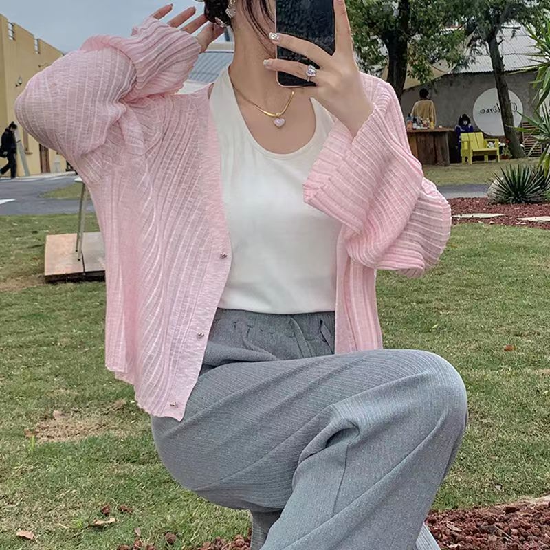 니트 가디건 느슨한 아이스 대마 플러스 사이즈 핏 블라우스 겉옷 짧은 겉옷 입고 얇은 자외선 차단제 에어컨 셔츠 여성 여름