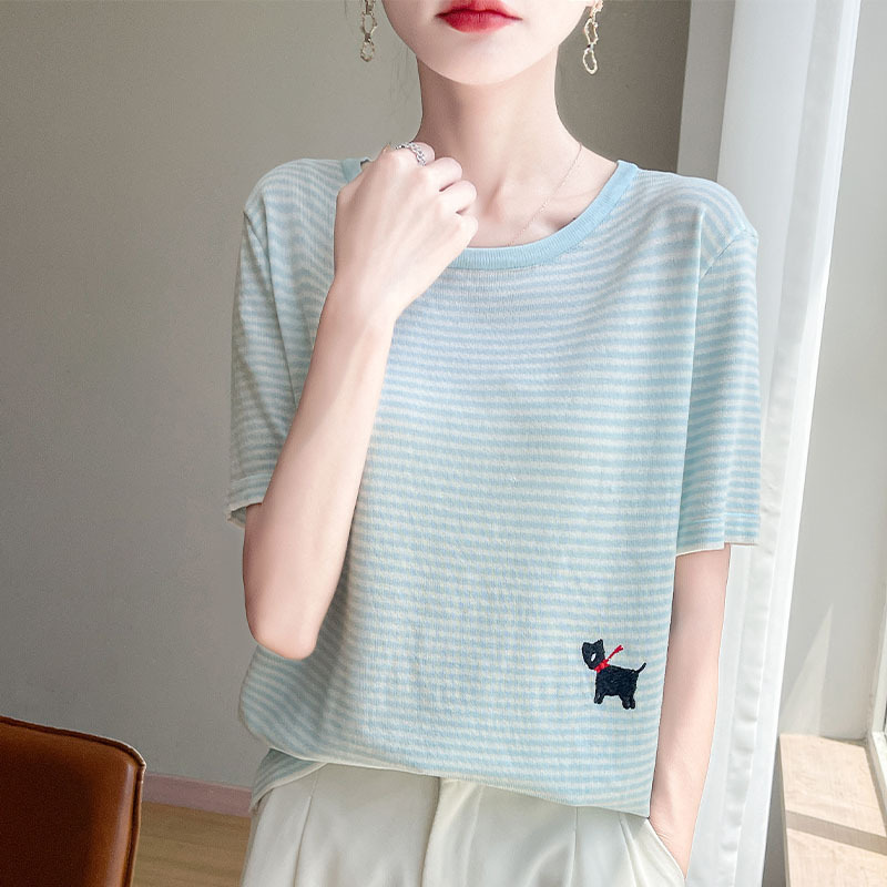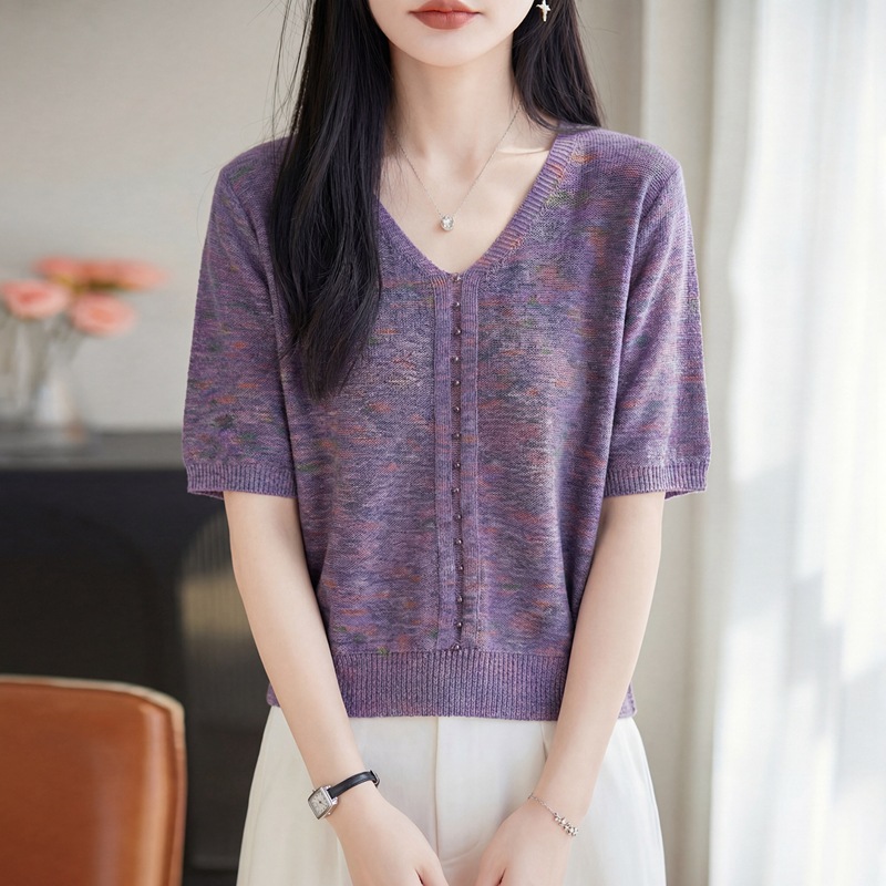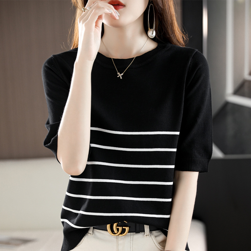 2026春夏季女装新款天丝七彩棉针织衫女T恤女V领短袖背心外贸批发 2025春款女式针织衫安迪绒毛衣女圆领短袖打底毛衫女韩版批发代发 夏新款女装曲珠冰麻丝短袖女针织衫T恤女圆领薄款韩版外贸批发代 夏短袖女冰丝亚麻丝光棉针织短袖女T恤女圆领条纹宽松外贸批代发
