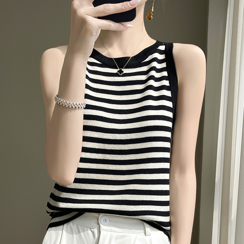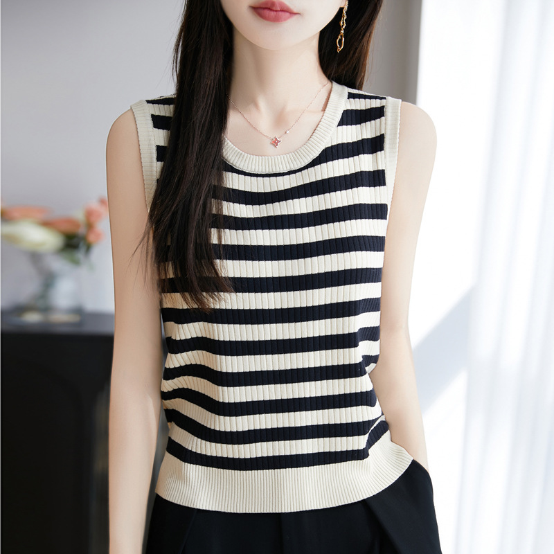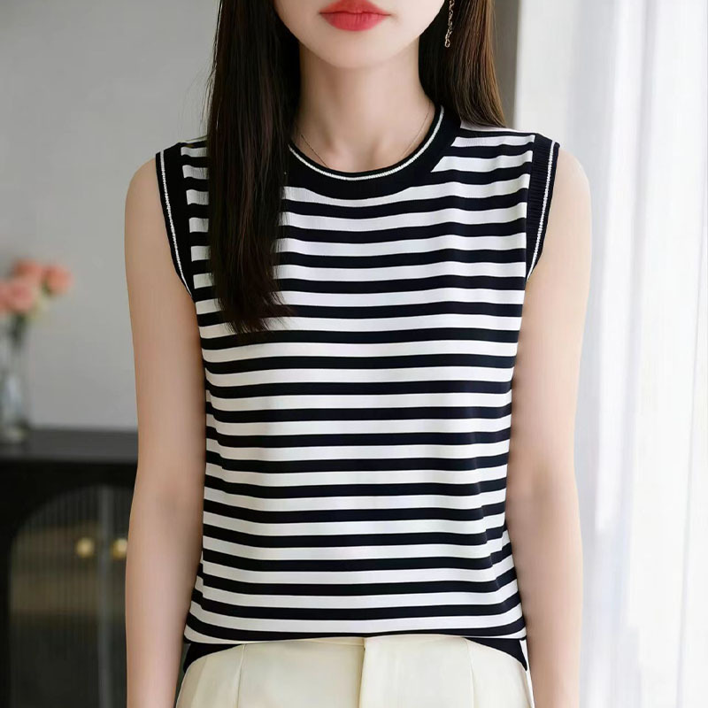 夏季女装新款曲珠冰麻丝短袖女针织衫条纹T恤女圆领背心外贸批发 夏季女装新款曲珠冰麻丝短袖女针织衫爱心T恤女圆领拼色外贸批发 夏新款曲珠冰麻丝针织衫女圆领无袖背心女黑白条纹内搭打底外贸批 2026春季款薄款羊毛针织衫吊带无袖背心女圆领内搭打底批发代发