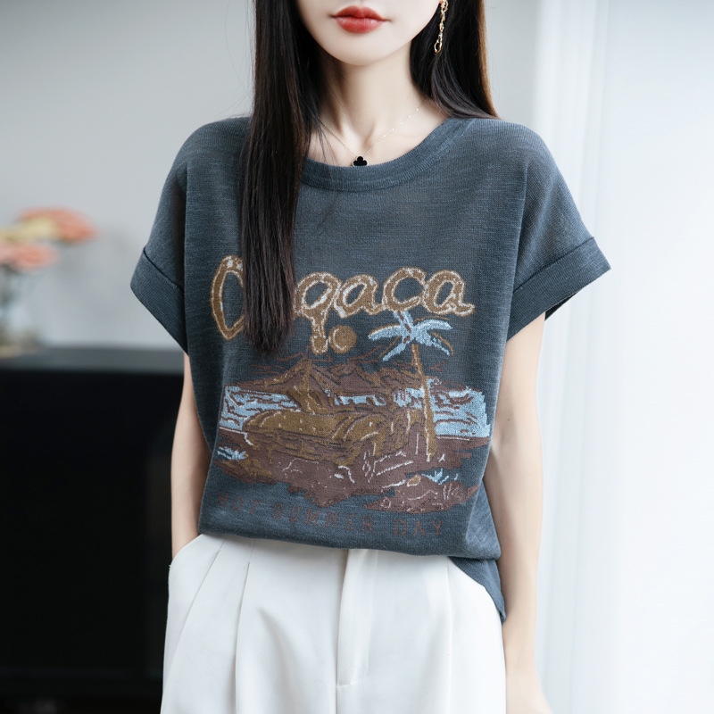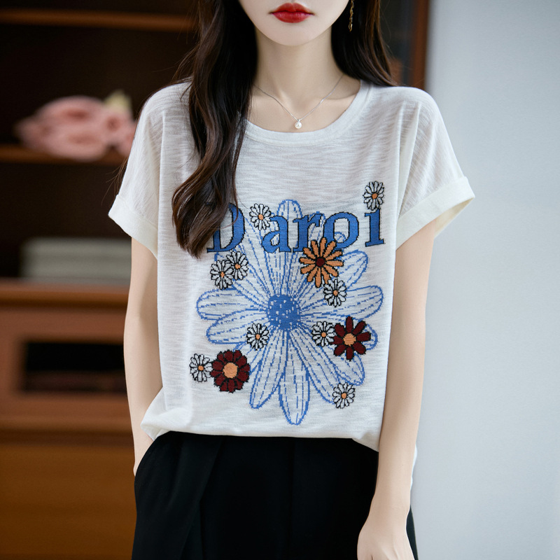 夏季女装新款女士针织衫莱塞尔天丝圆领薄款印花短袖女T恤女批发 夏女装新款曲珠冰麻丝短袖女针织衫山茶花T恤女圆领背心外贸批发 夏季女装新款女士针织衫莱塞尔天丝圆领薄款印花短袖女T恤女批发 夏季女装新款针织衫竹节麻短袖女T恤女圆领背心大象印花厂家批发