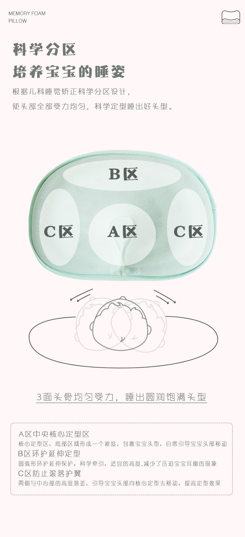 아기 모양의 베개 편견 방지 헤드 베개 통기성 교정 헤드 모양 교정 바이어스 헤드 신생아 아기 새로운 이동식 및 빨스토어 가기