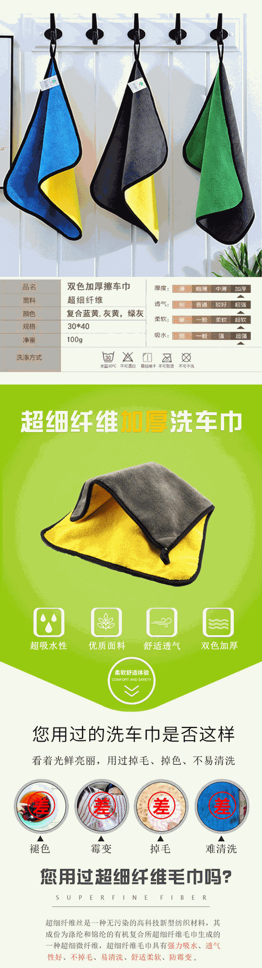 자동차 유리용 물티슈, 초극세사 두꺼운 세차용 선물 타월, 자동차 유리에 흔적을 남기지 않음