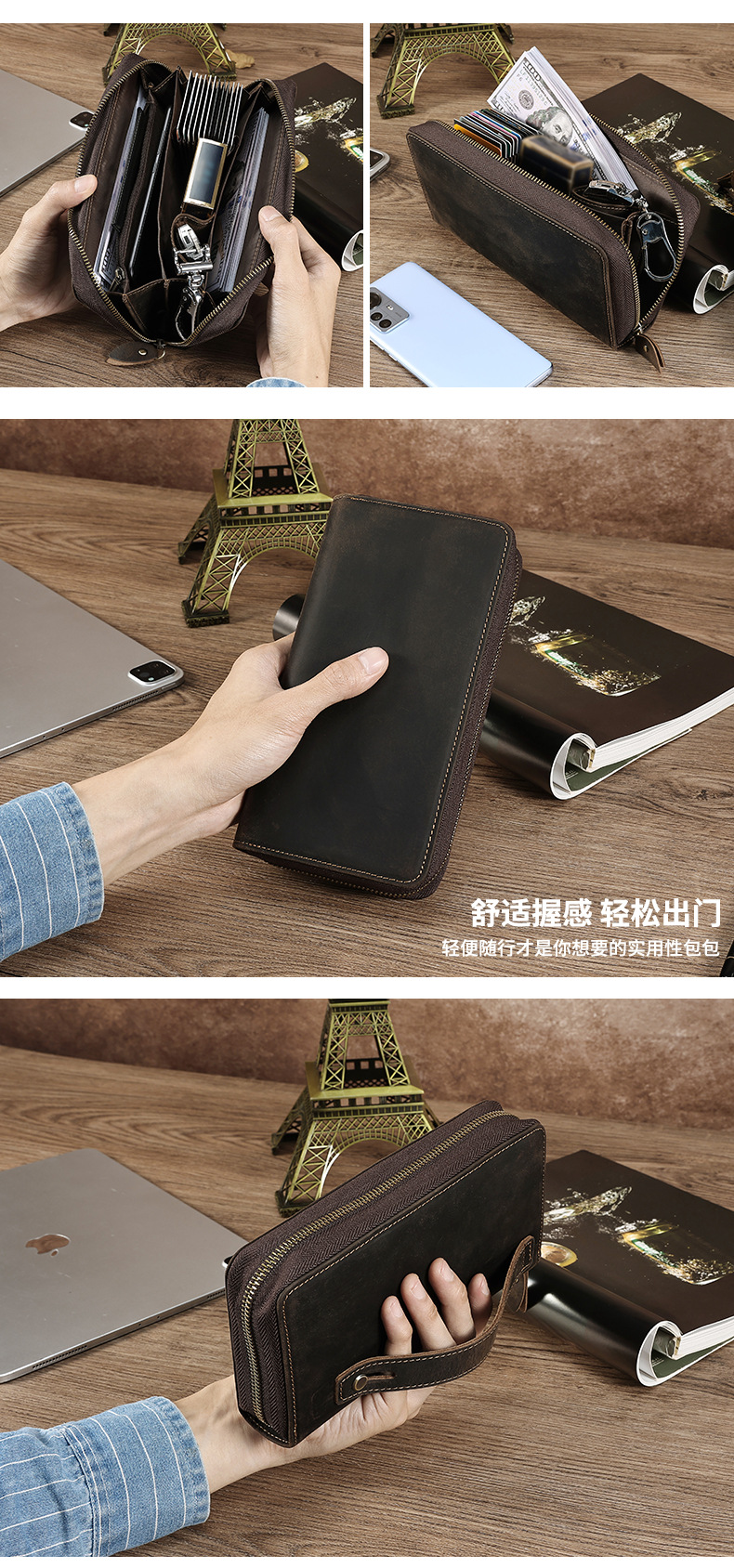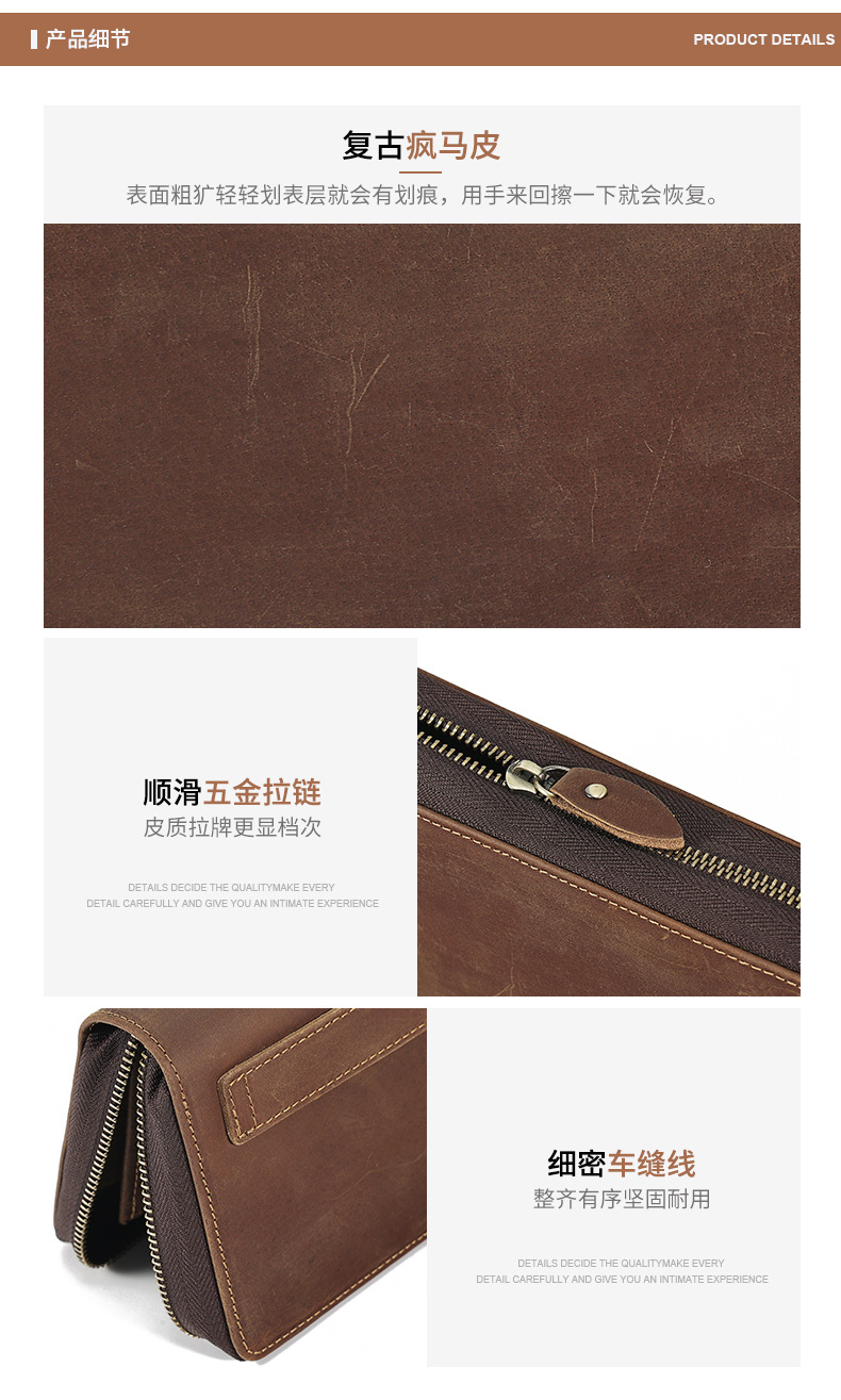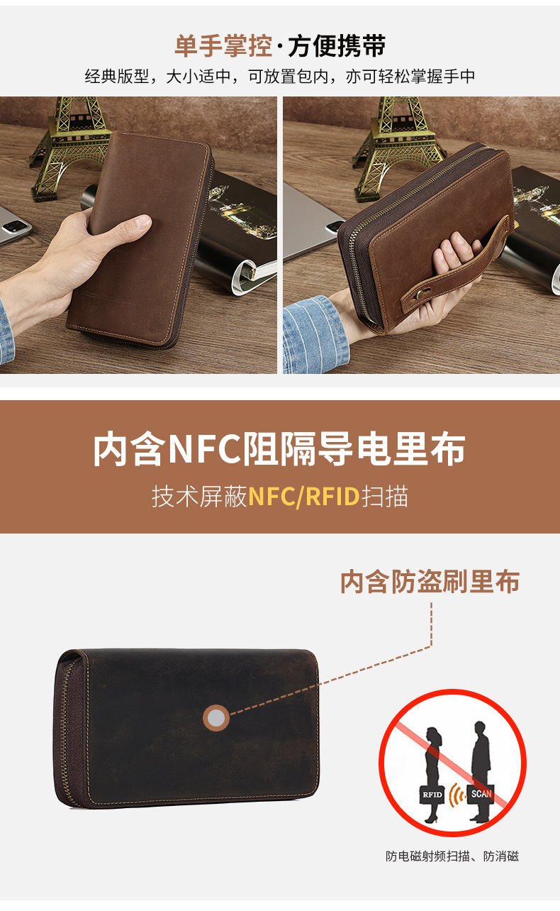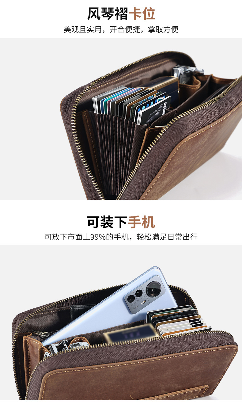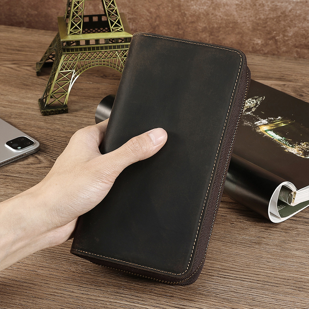 국경을 넘는 새로운 남성 클러치 백 Crazy Horse 가죽 레트로 롱 클러치 백 남성 정품 가죽 비즈니스 지퍼 지갑 지갑스토어 가기