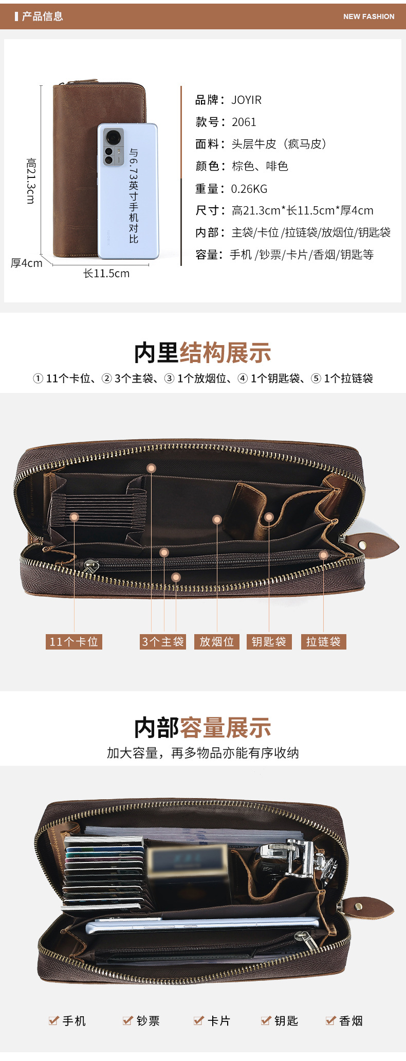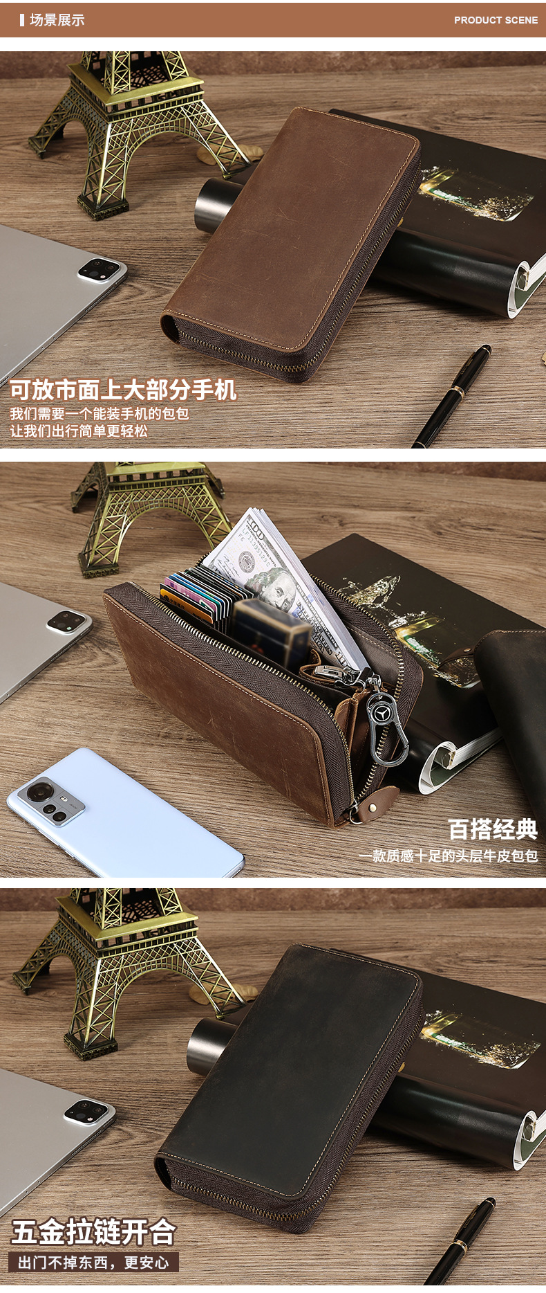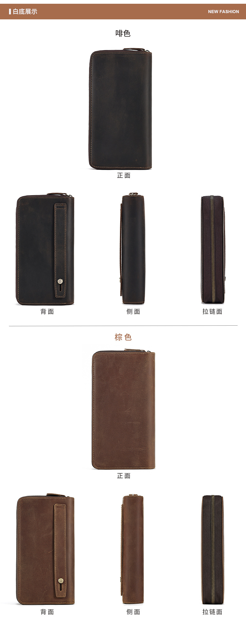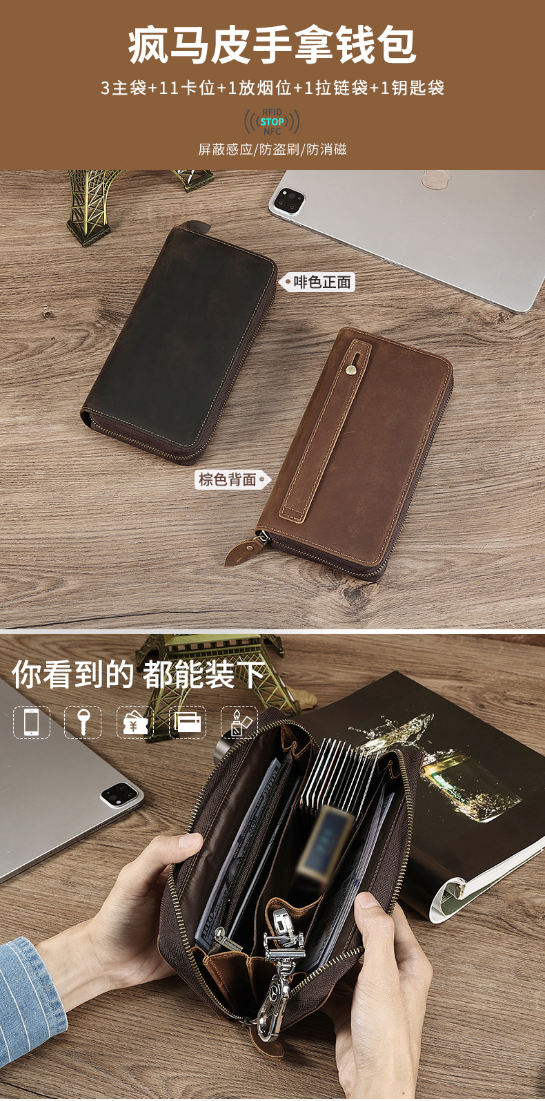 국경을 넘는 새로운 남성 클러치 백 Crazy Horse 가죽 레트로 롱 클러치 백 남성 정품 가죽 비즈니스 지퍼 지갑 지갑스토어 가기