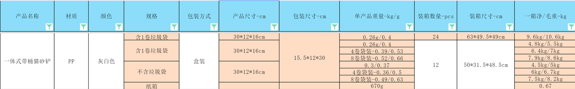 • 통합 고양이 쓰레기 삽 (1 롤 블루 하우스 포함)