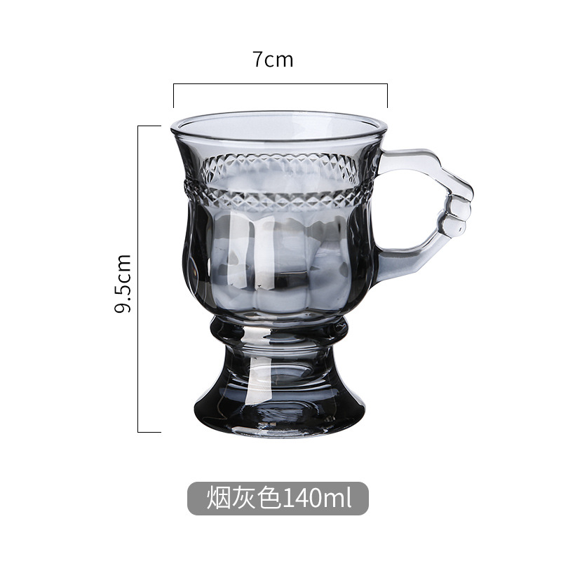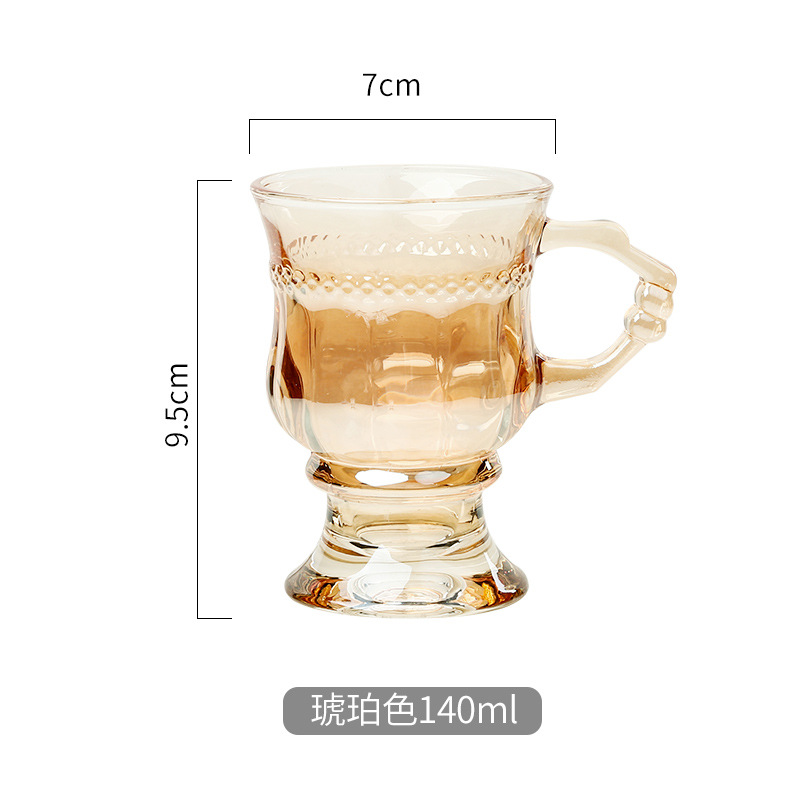 레트로 유럽 스타일 물 컵 찻잔 가정용 우유 차 컵 손잡이 와인 컵 커피 컵과 앰버 유리