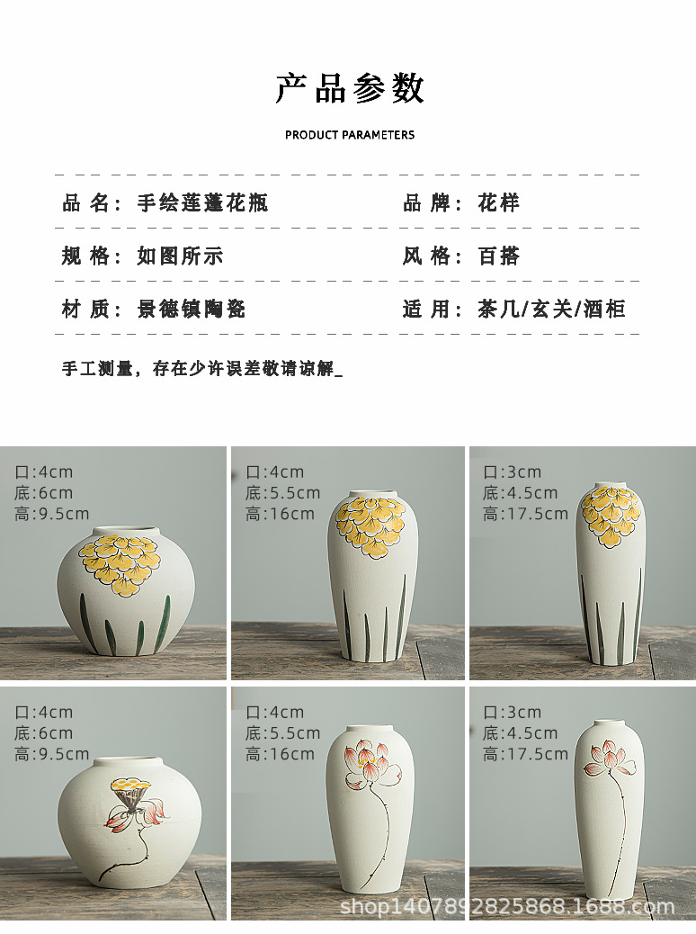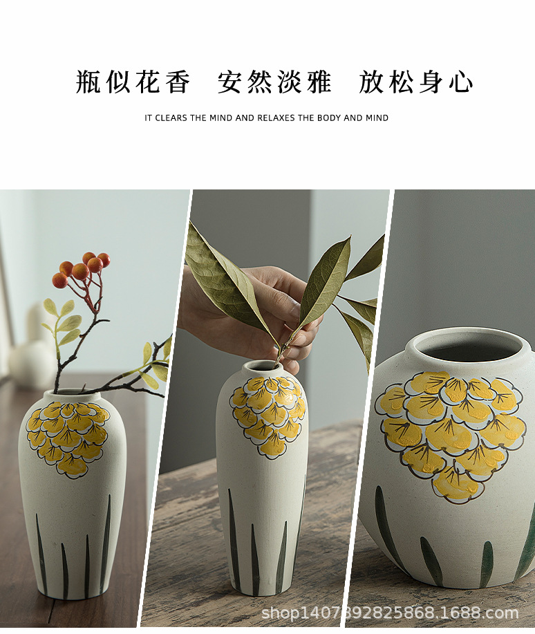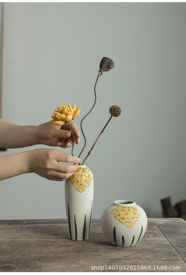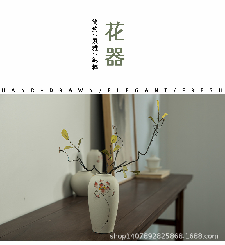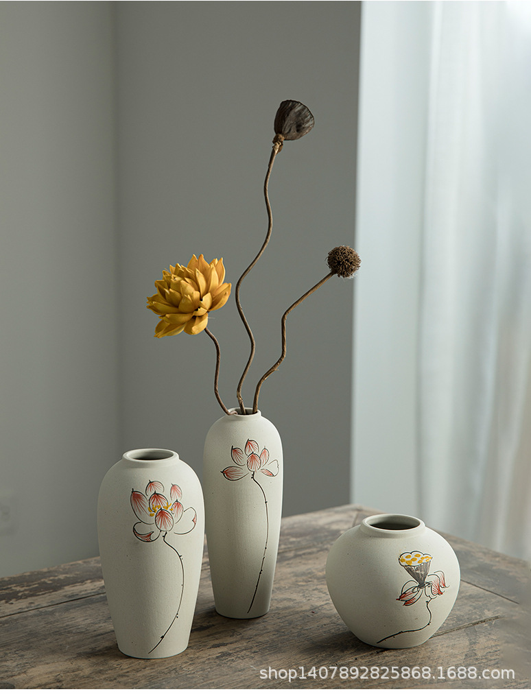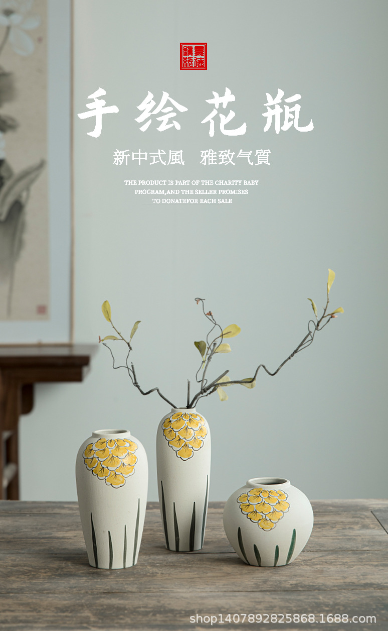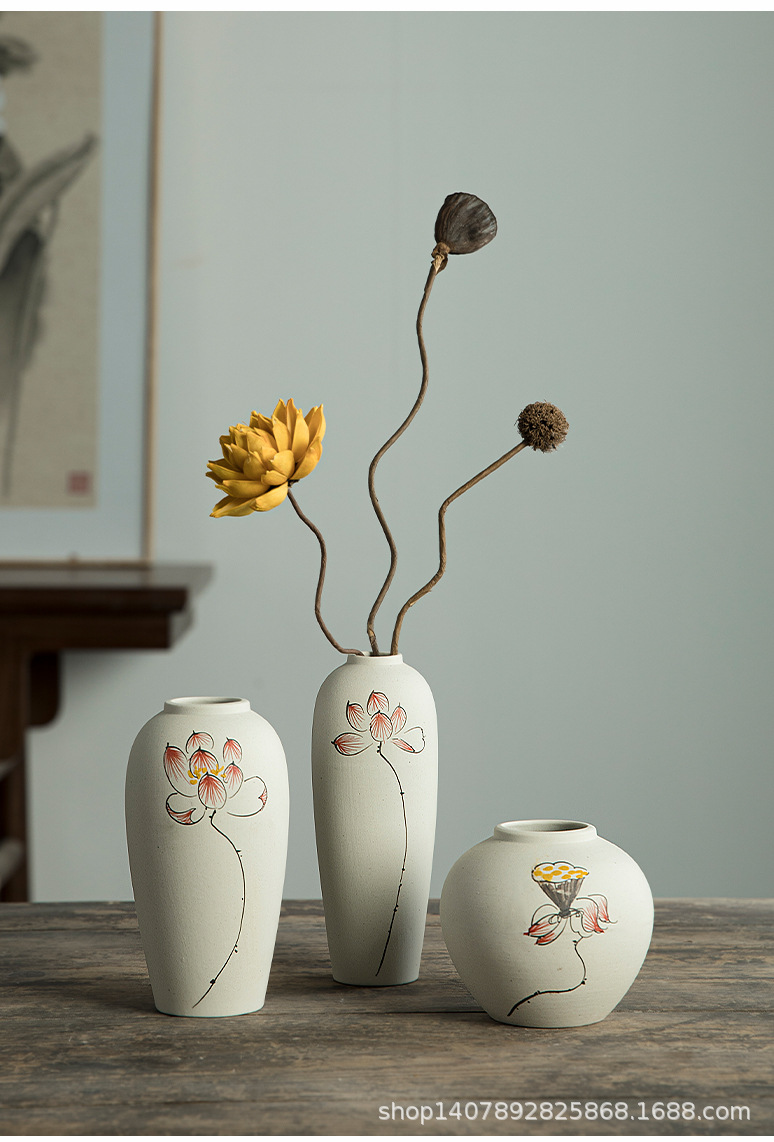 Jingdezhen 손으로 그린 세라믹 작은 꽃병 세트 새로운 중국 스타일 복고풍 예술 현대 스타일 장식품 홈 장식스토어 가기