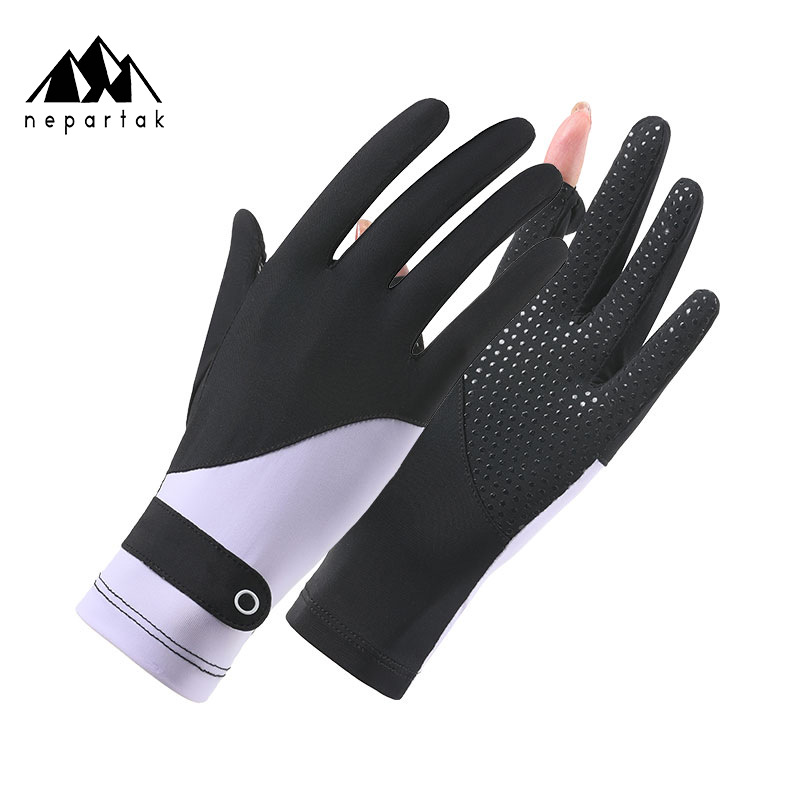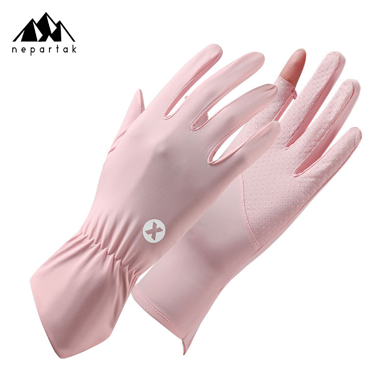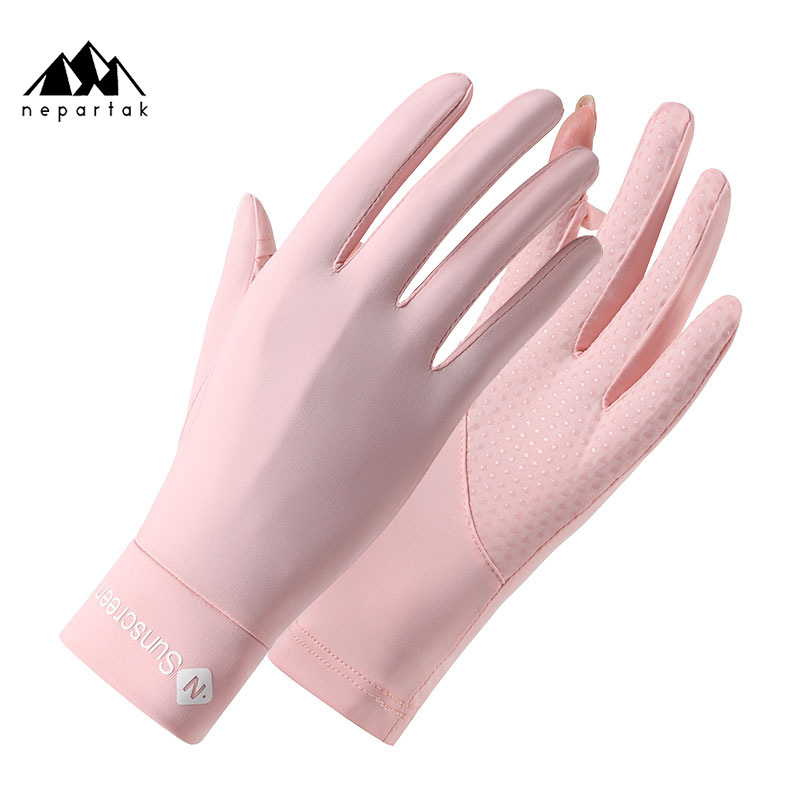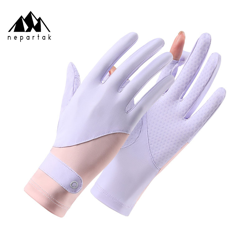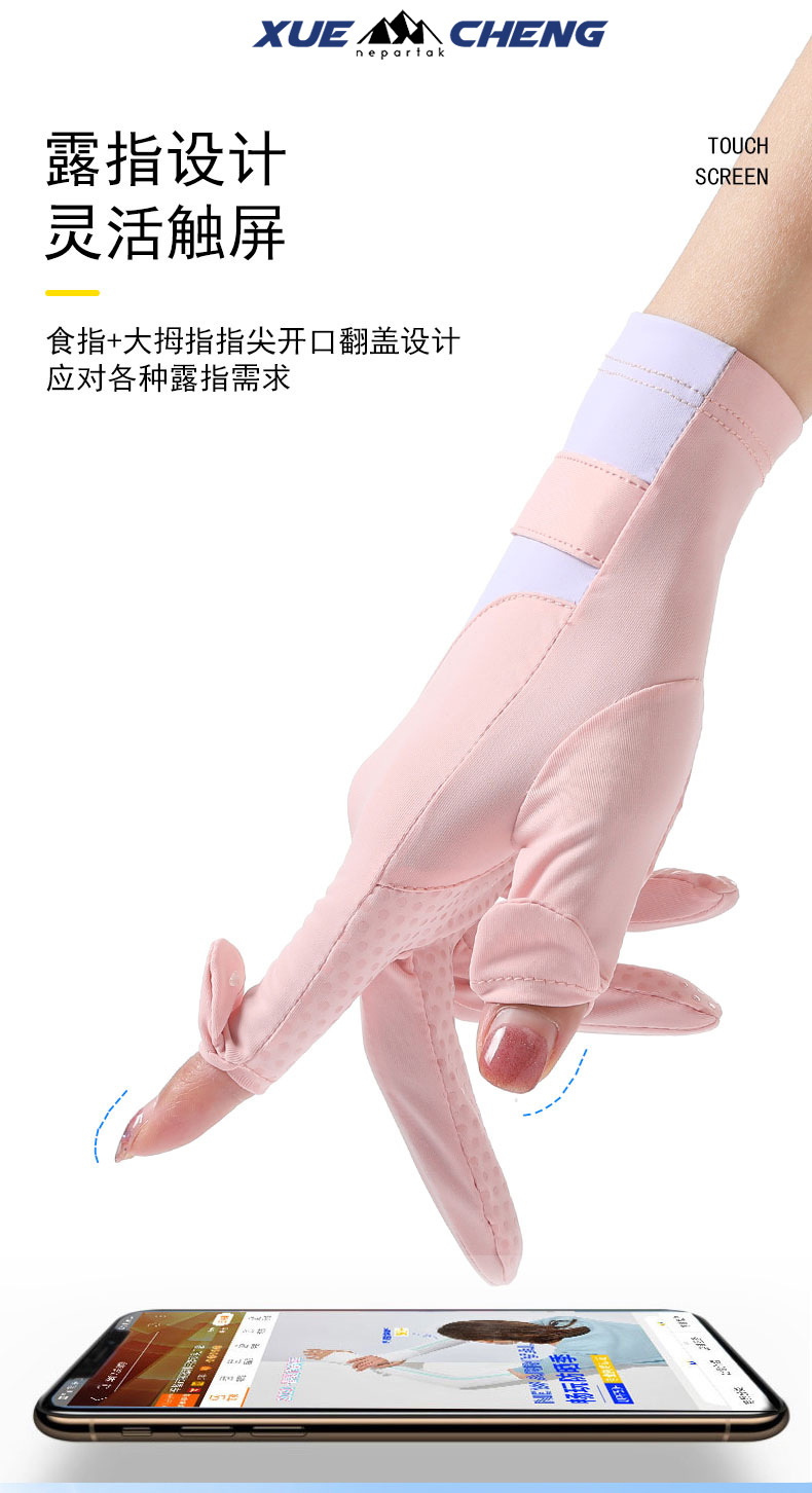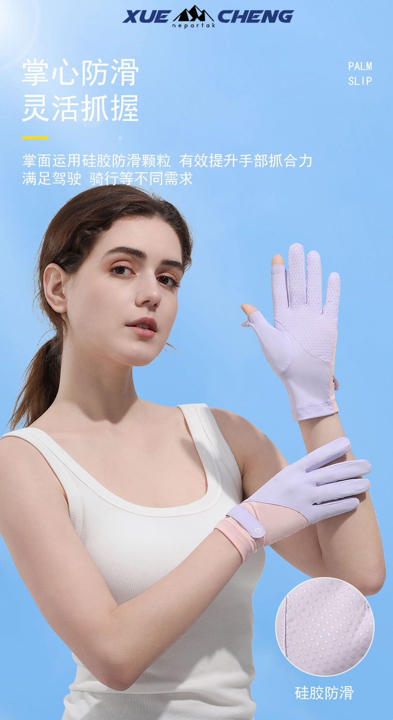 여름 여성의 태양 보호 장갑 여성의 노출 손가락 터치 스크린 UV 보호 얇은 짧은 얼음 실크 통기성 얼음 감각 야외 운전
