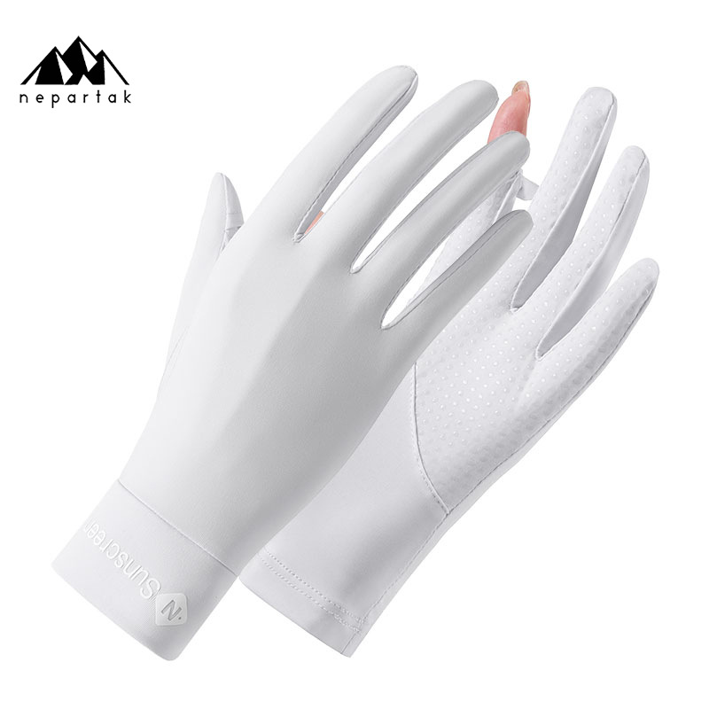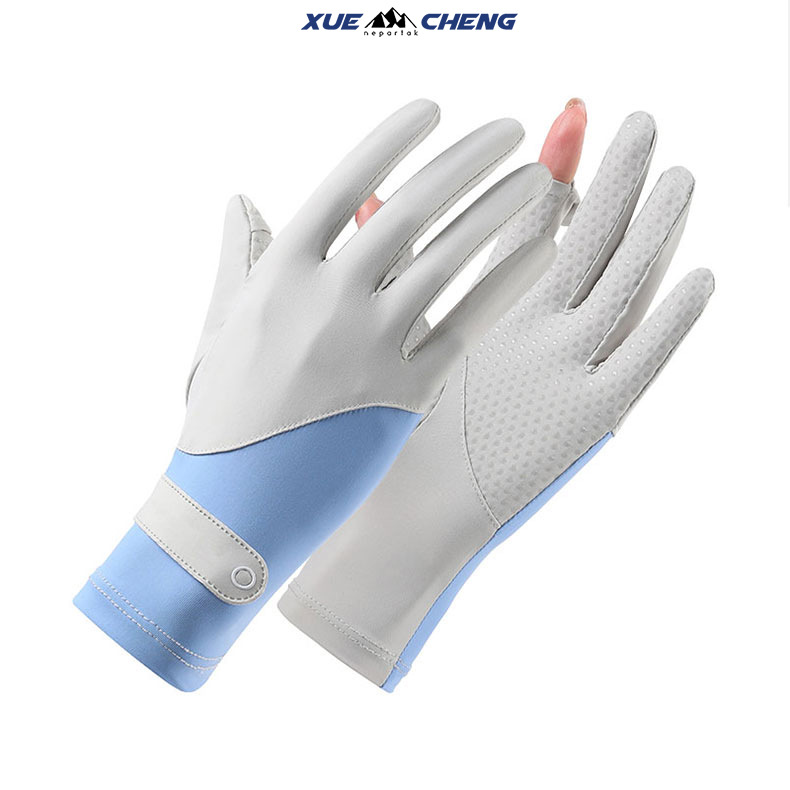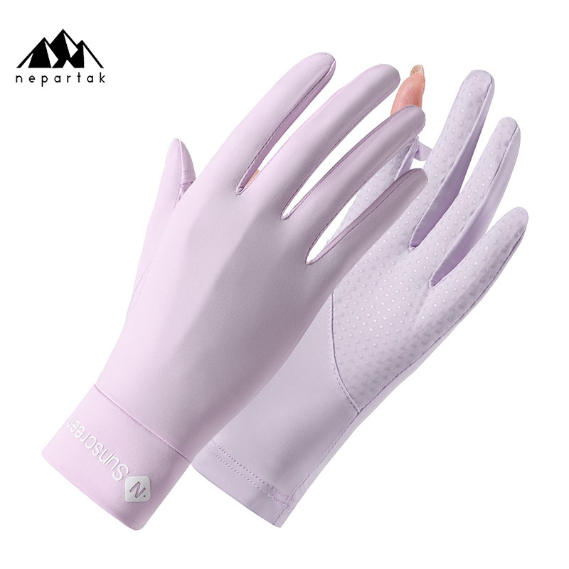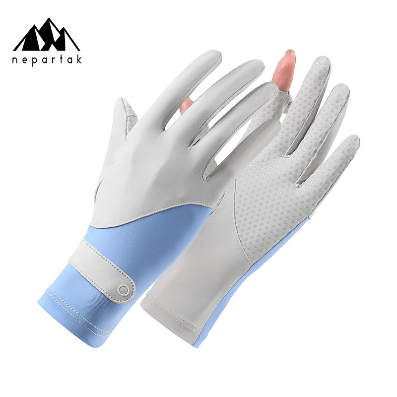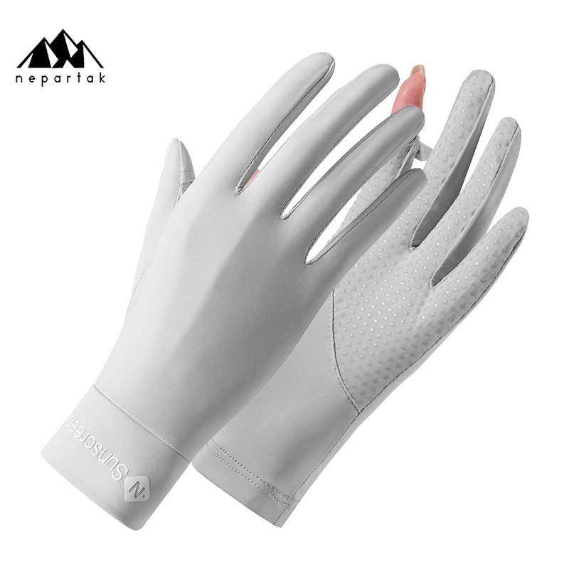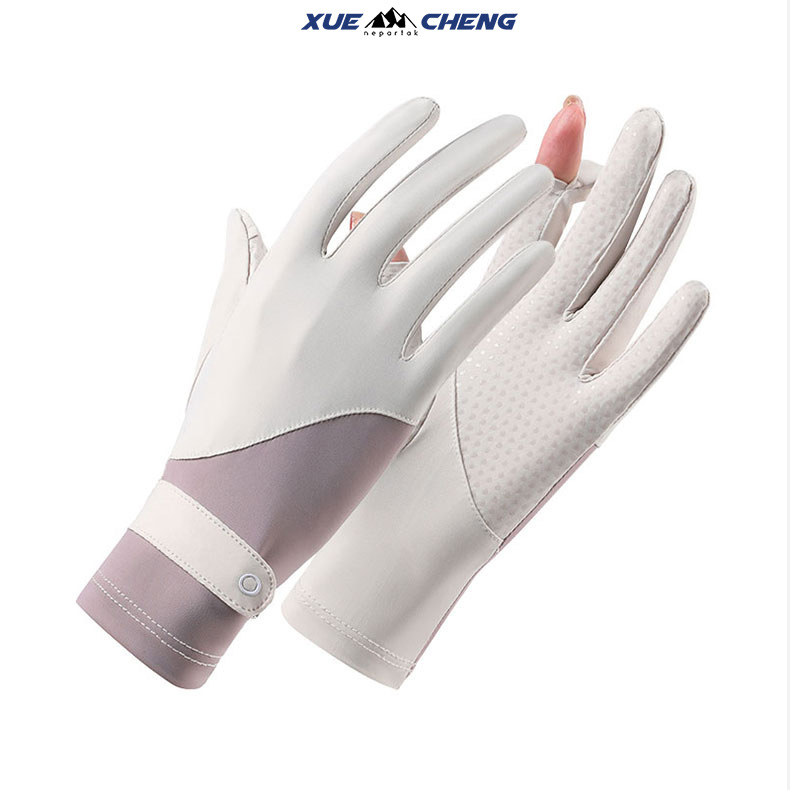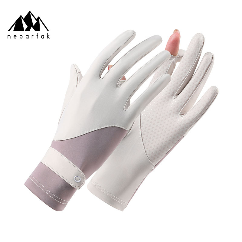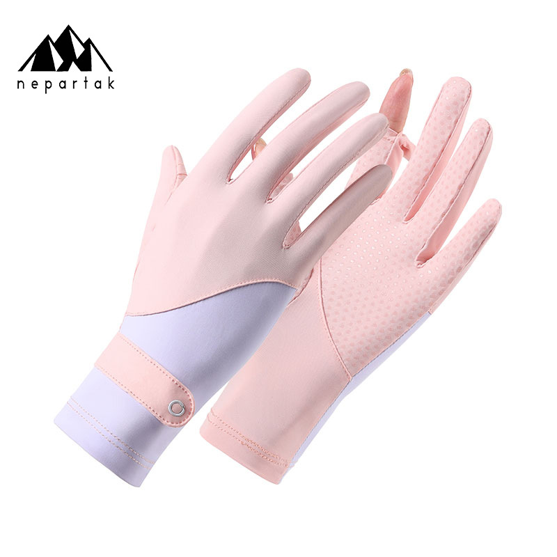 여름 여성의 태양 보호 장갑 여성의 노출 손가락 터치 스크린 UV 보호 얇은 짧은 얼음 실크 통기성 얼음 감각 야외 운전