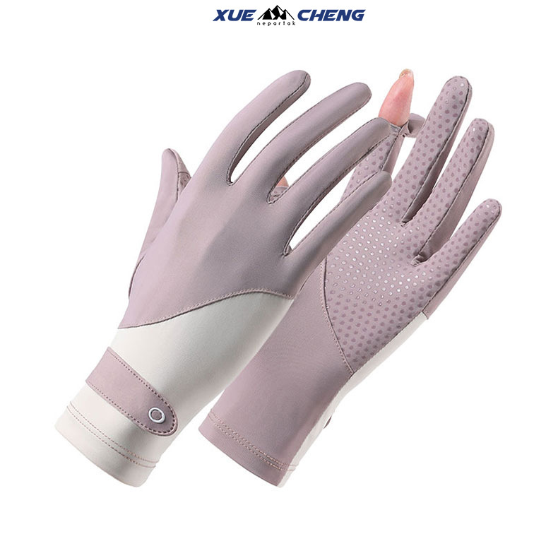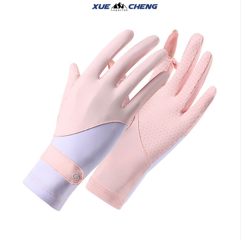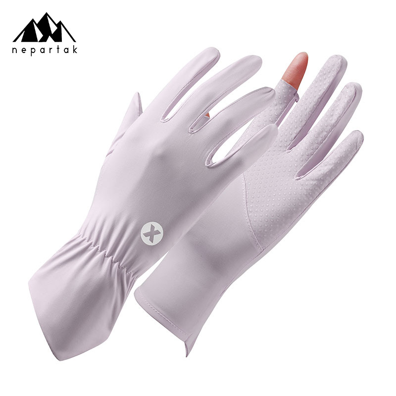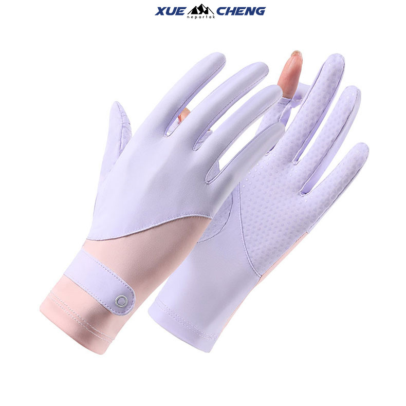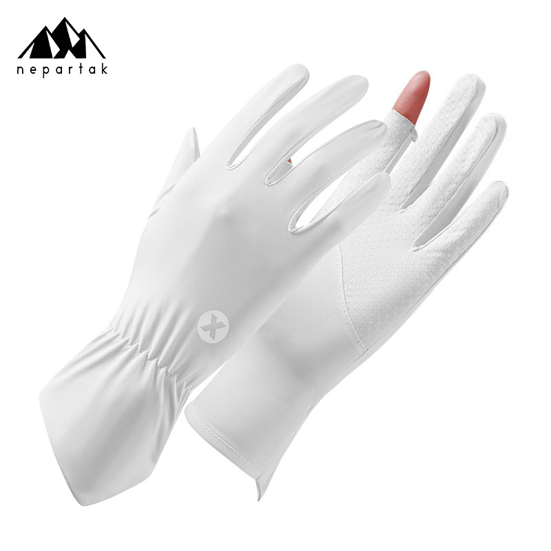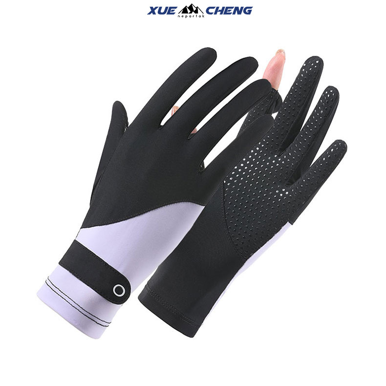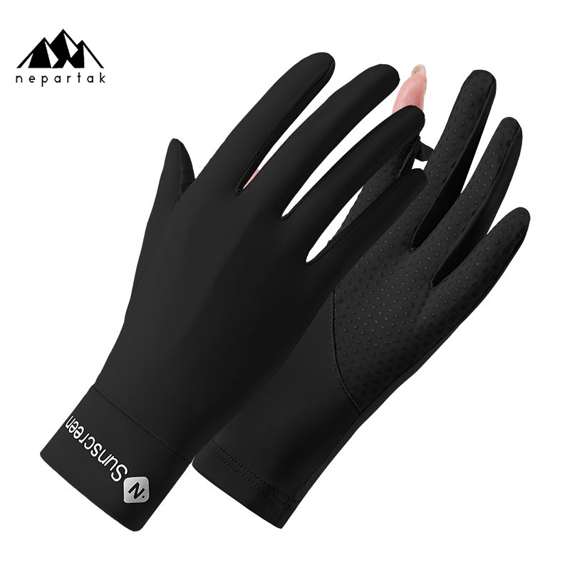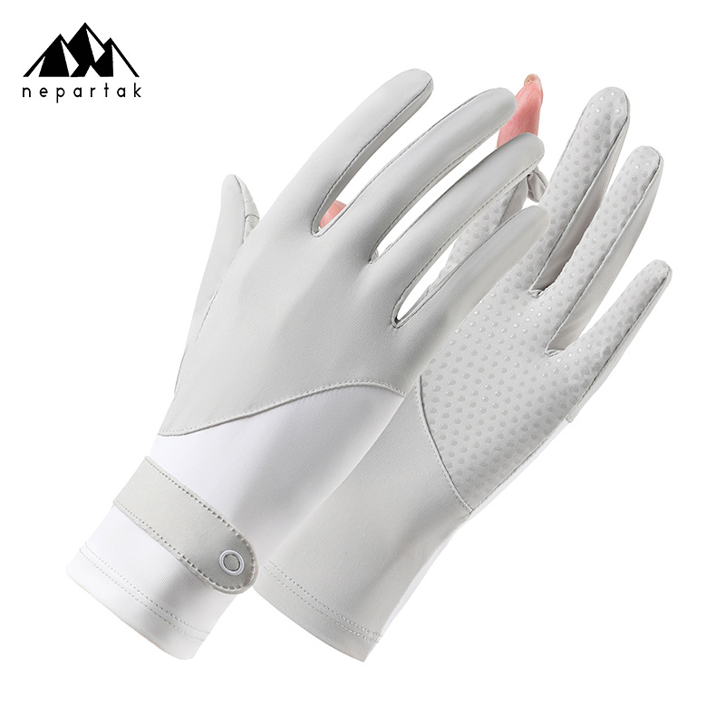 여름 여성의 태양 보호 장갑 여성의 노출 손가락 터치 스크린 UV 보호 얇은 짧은 얼음 실크 통기성 얼음 감각 야외 운전