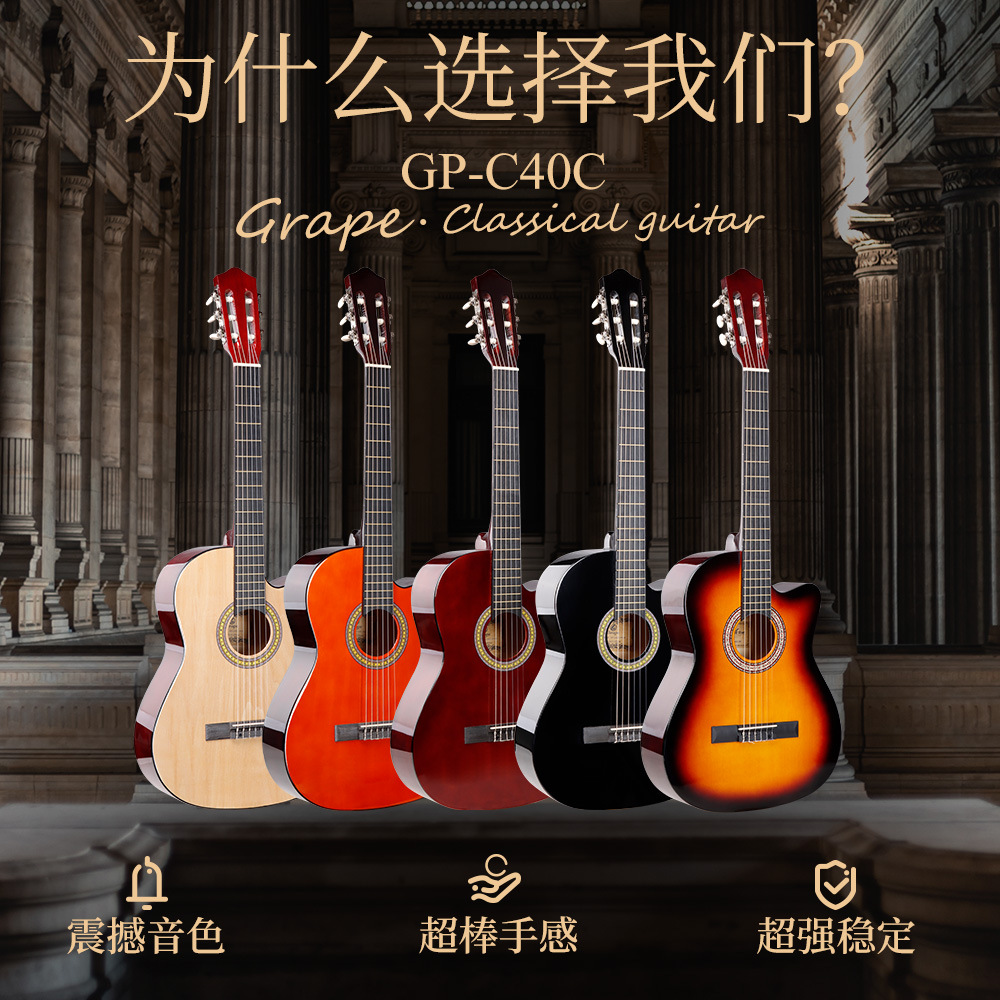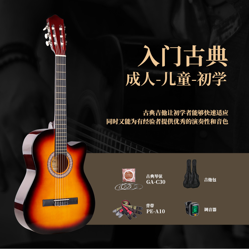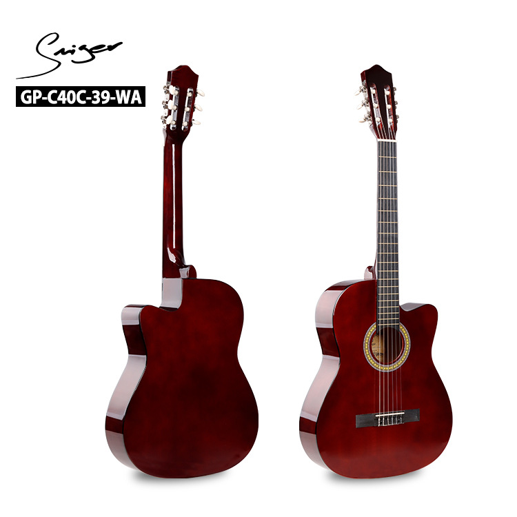 오리지널 기타 공장 39inch 모서리가 빠진 클래식 목재 기타, 전자박스 장착 가능, 초보자 연습용 기타