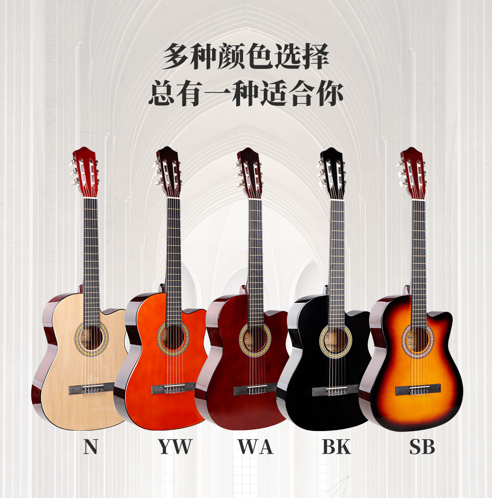오리지널 기타 공장 39inch 모서리가 빠진 클래식 목재 기타, 전자박스 장착 가능, 초보자 연습용 기타스토어 가기