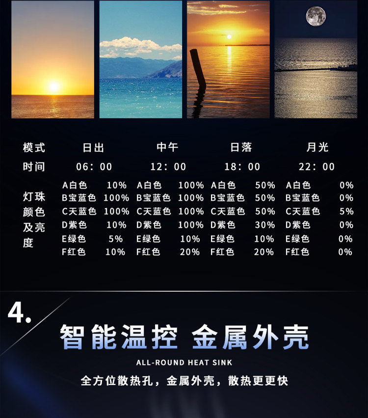 Guanke 해수 탱크 산호 램프 Q2Q3A030A052A075 전체 스펙트럼 LED 일출 및 일몰 해수 산호 램프