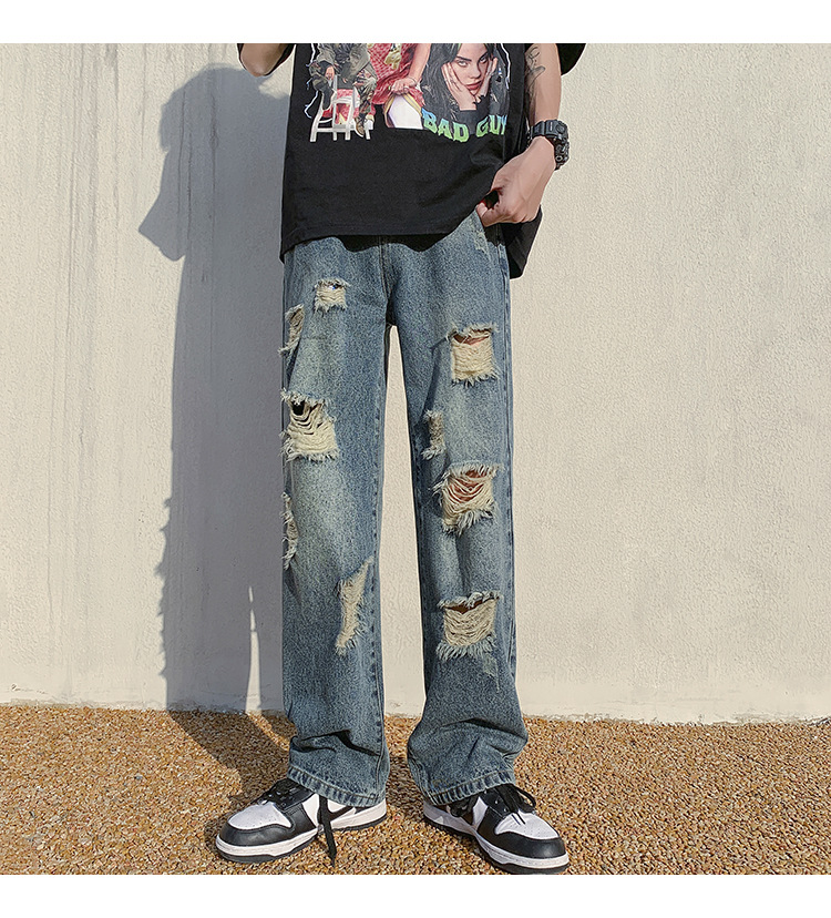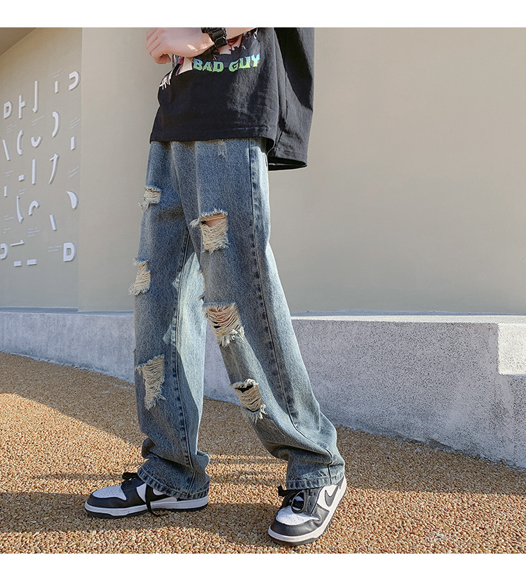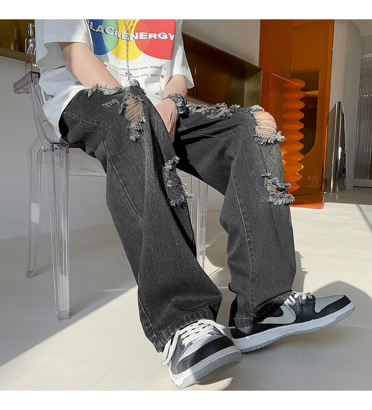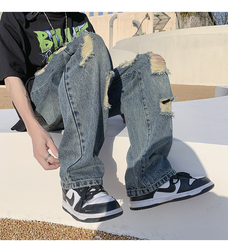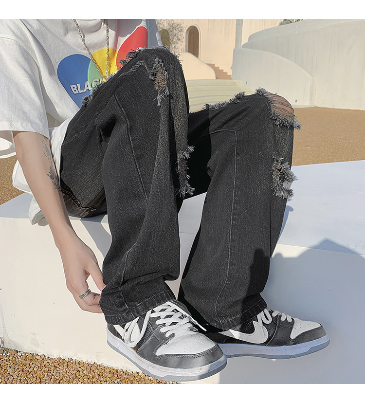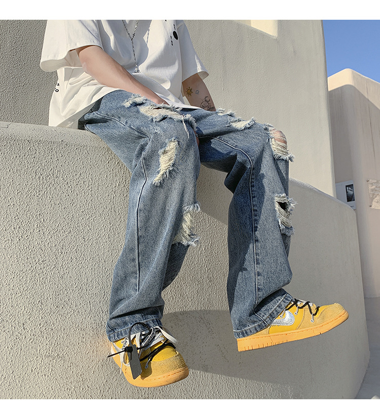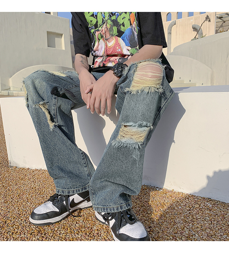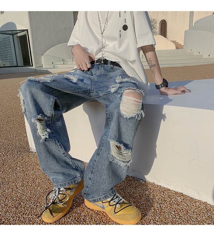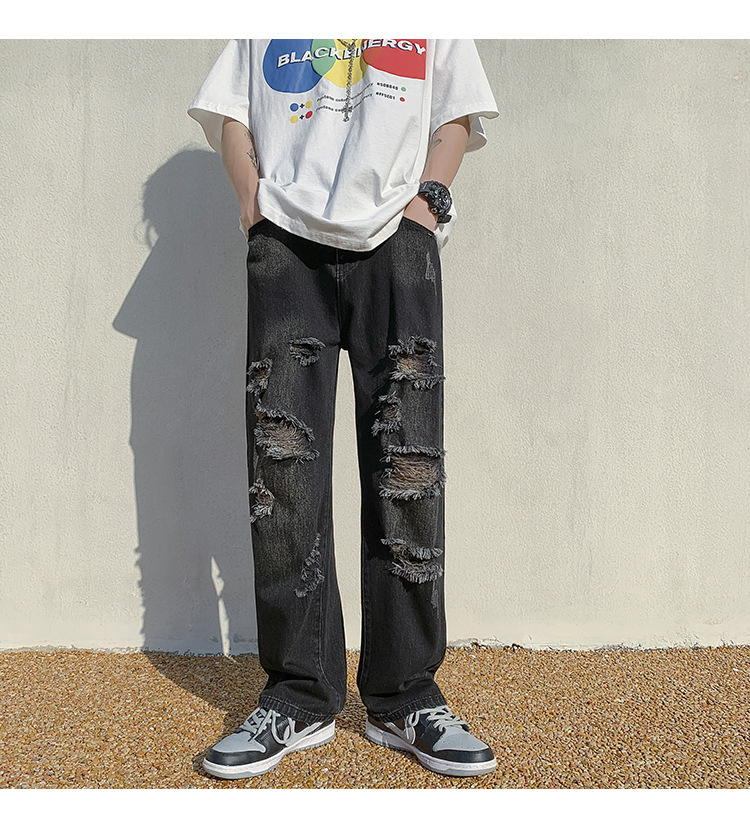 찢어진 청바지 남자의 여름 in 하이 스트리트 느슨한 거지 와이드 레그 팬츠 디자인 센스 틈새 트렌디 브랜드 스트레이트 팬츠스토어 가기