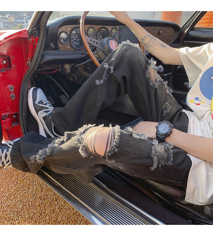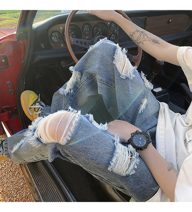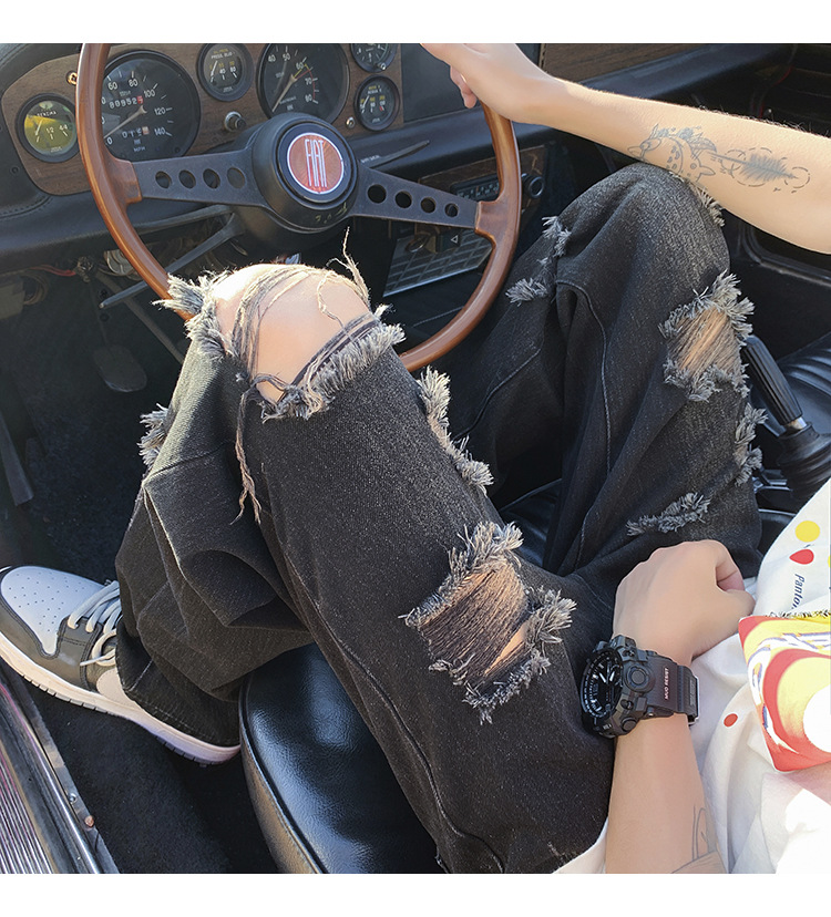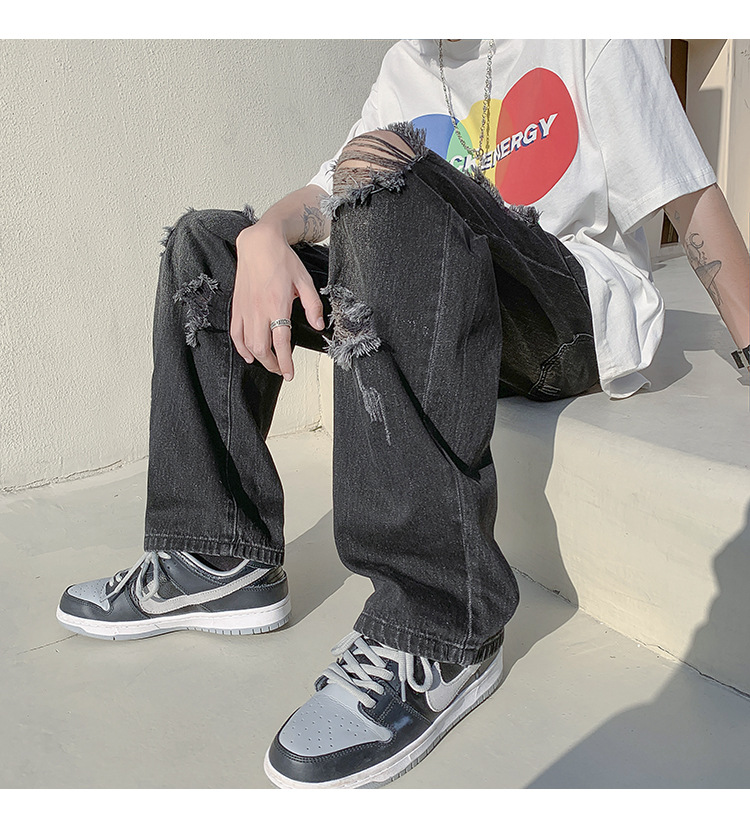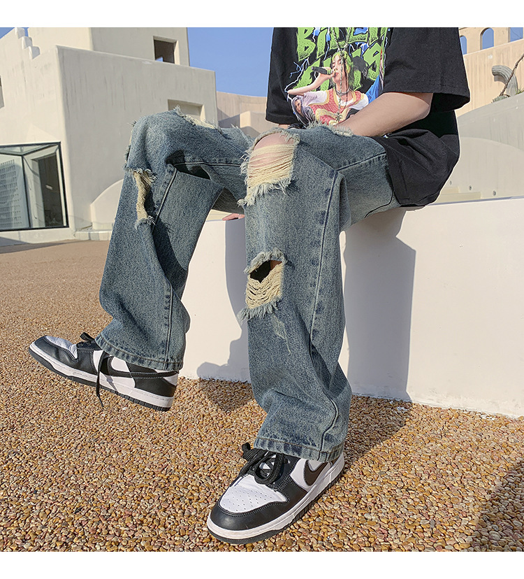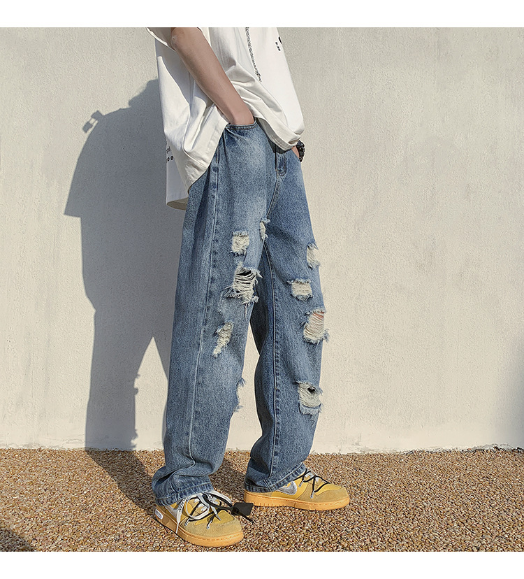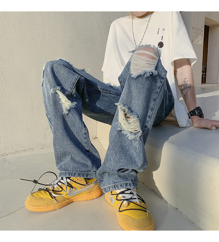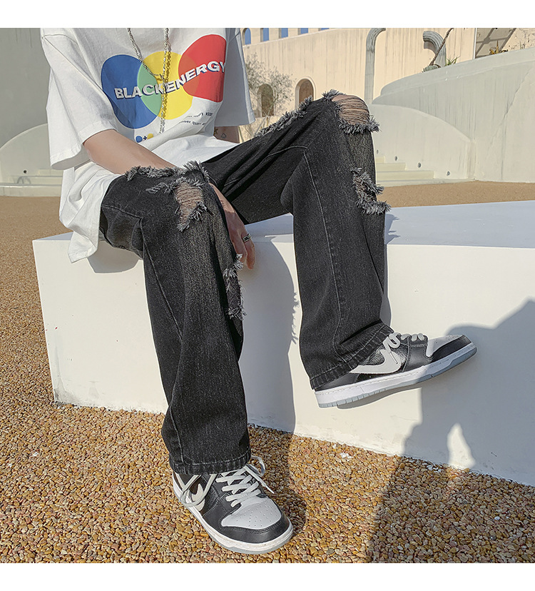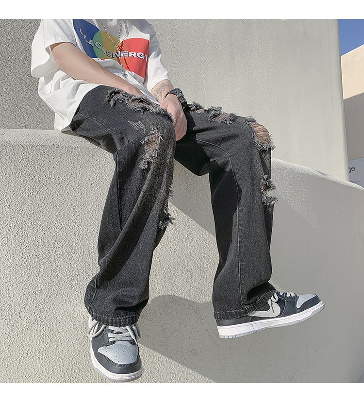 찢어진 청바지 남자의 여름 in 하이 스트리트 느슨한 거지 와이드 레그 팬츠 디자인 센스 틈새 트렌디 브랜드 스트레이트 팬츠스토어 가기