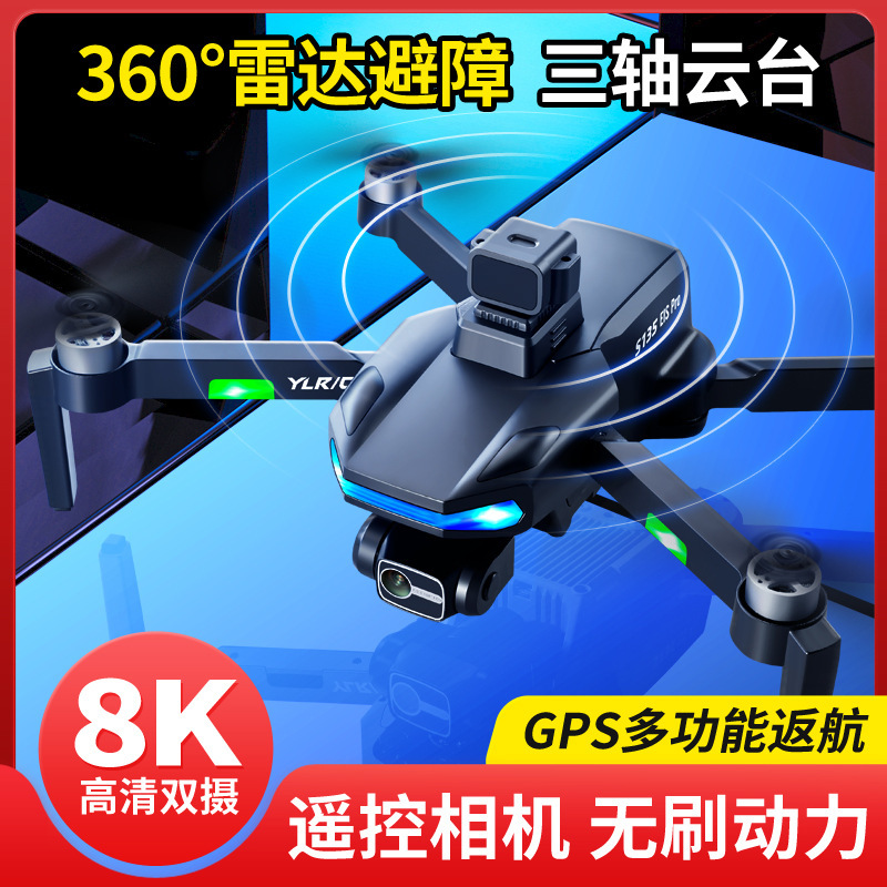 S135 3 축 팬 틸트 드론 GPS 4 면 장애물 회피 원격 제어 항공기 브러시리스 모터 4 축 항공기스토어 가기