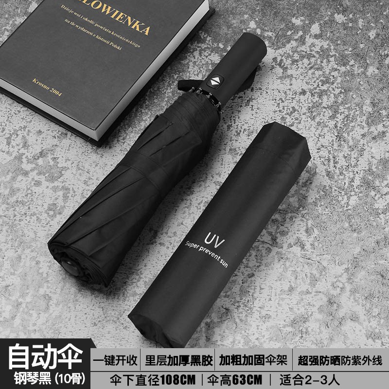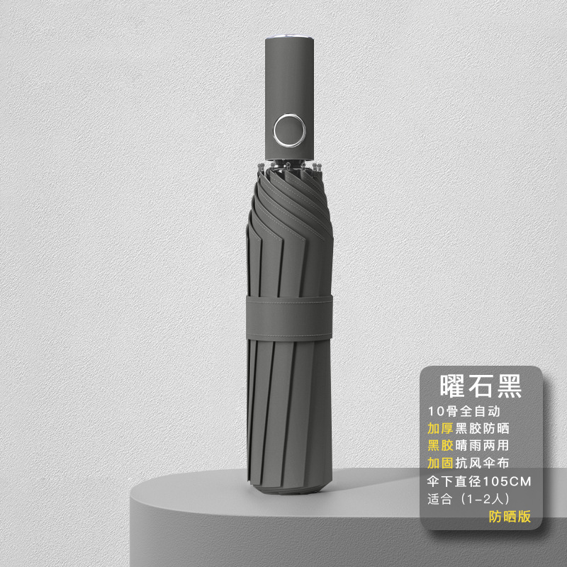 • 10 뼈 자동 업그레이드 합금 우산 홀더 블랙 접착제 우산-흑요석 블랙