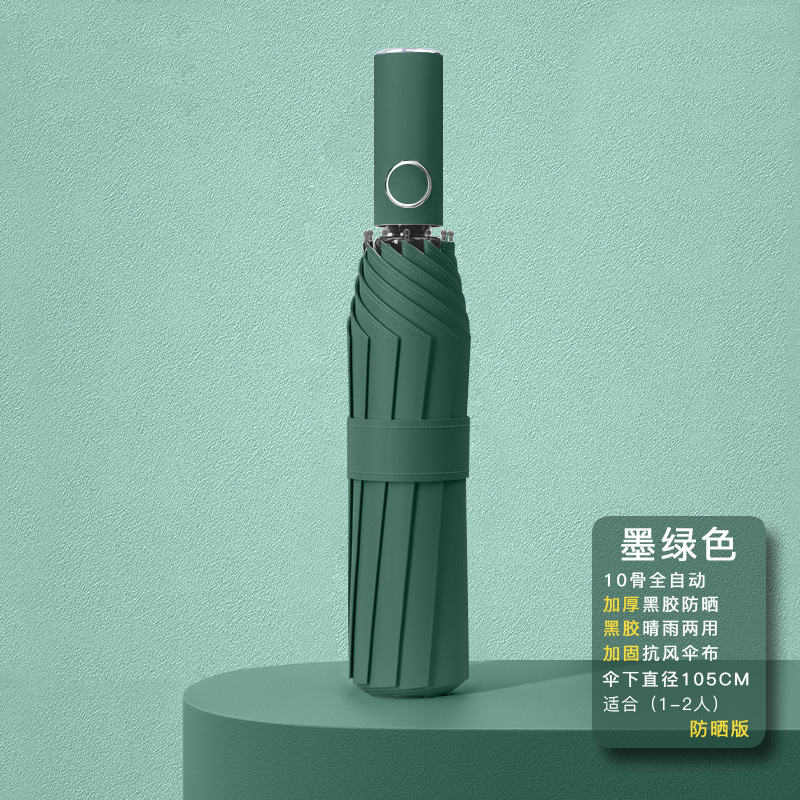 • 10 뼈 자동 업그레이드 합금 우산 스탠드 검은 고무 우산-다크 그린
