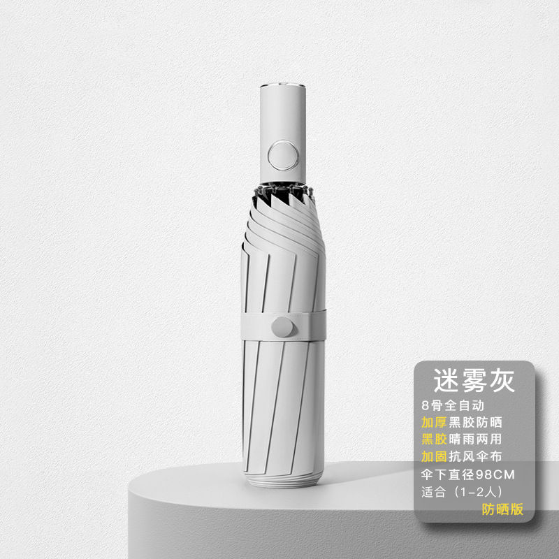• 8 본 자동 업그레이드 합금 우산 스탠드 블랙 접착제 우산-미스트 그레이