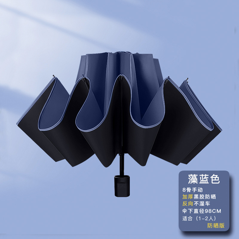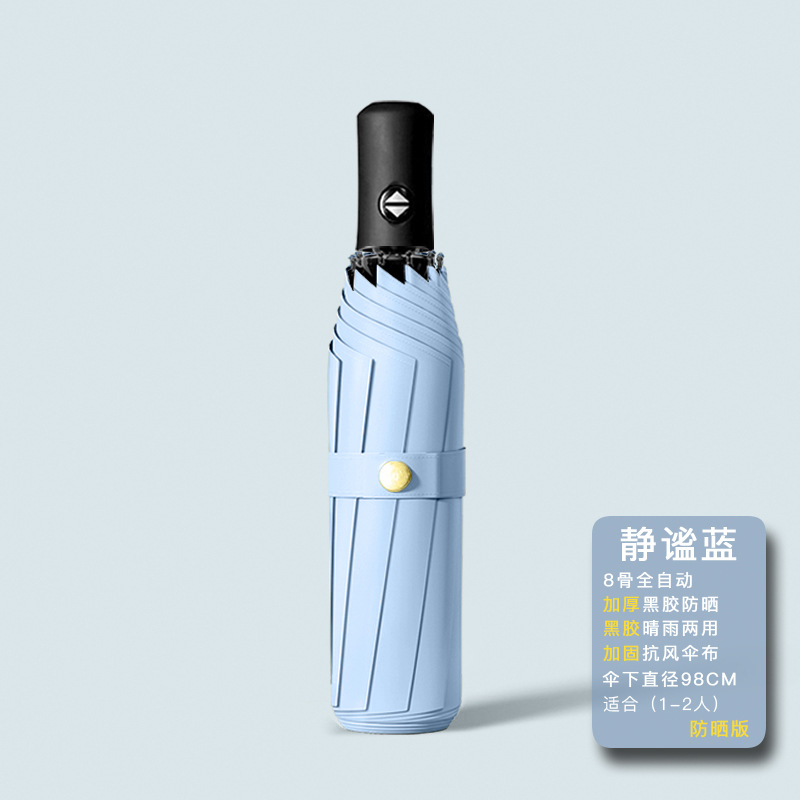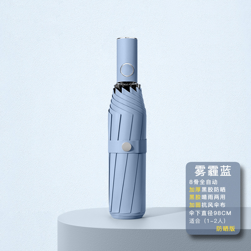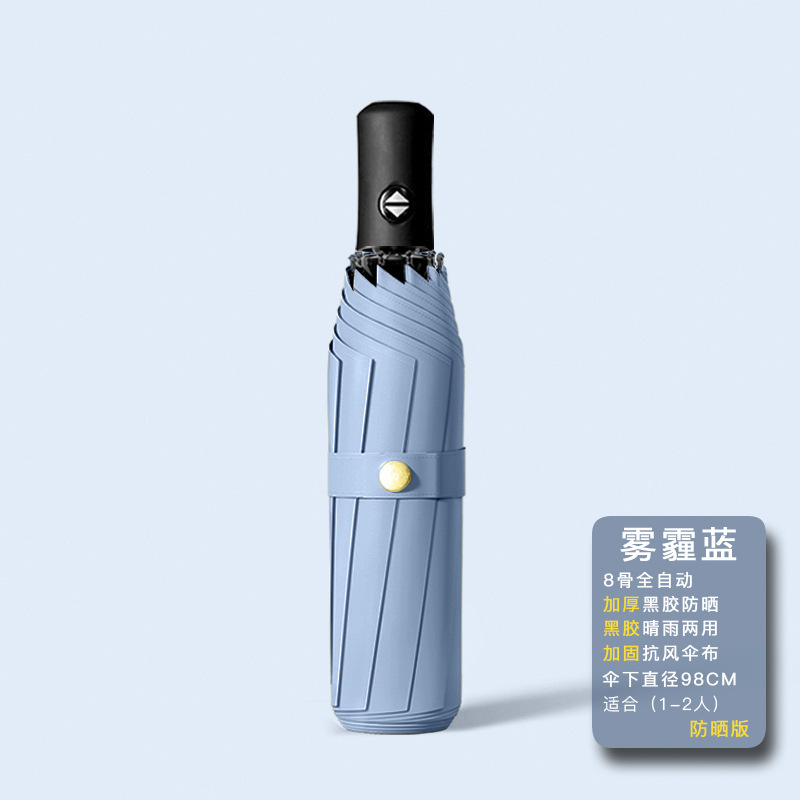 • 8 본 자동 업그레이드 합금 우산 스탠드 검정 고무 우산-헤이즈 블루