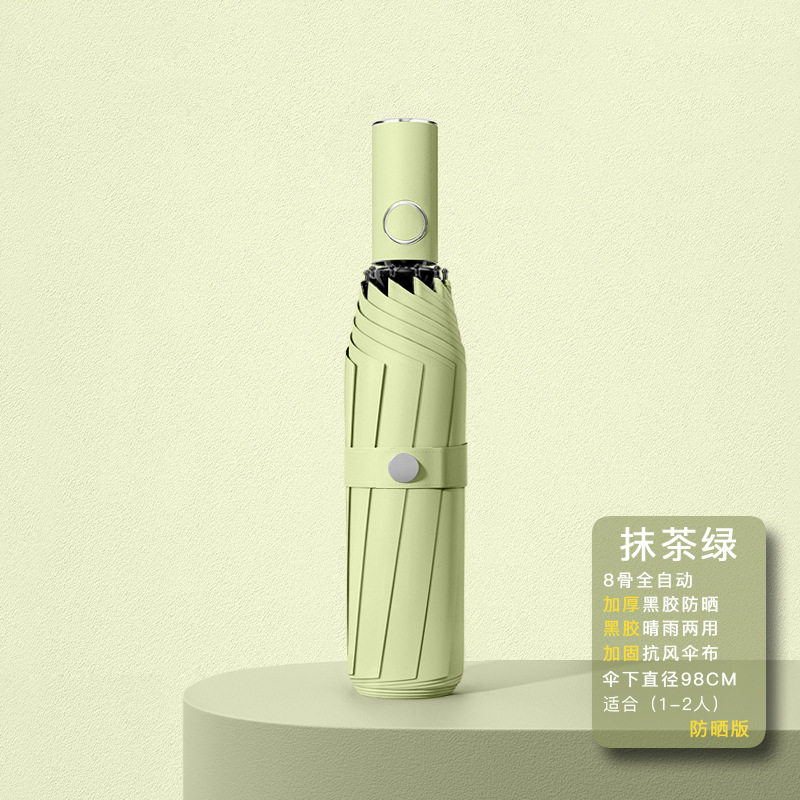 • 8 뼈 자동 업그레이드 합금 우산 받침대 검정 고무 우산-말차 그린