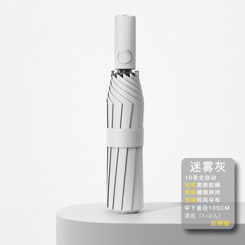 • 10 뼈 자동 업그레이드 합금 우산 홀더 블랙 접착제 우산-미스트 그레이