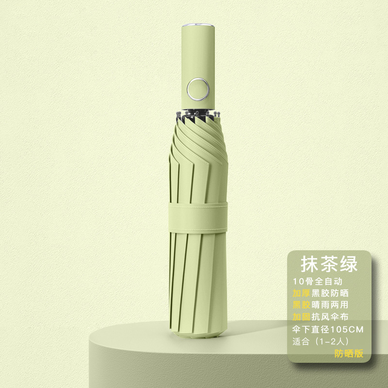 • 10 뼈 자동 업그레이드 합금 우산 홀더 블랙 고무 우산-말차 그린