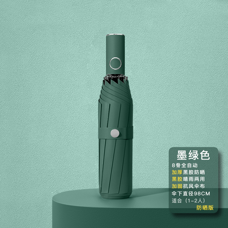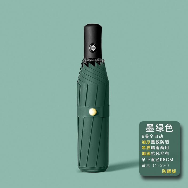 • 8 뼈 자동 업그레이드 합금 우산 스탠드 검은 고무 우산-다크 그린
