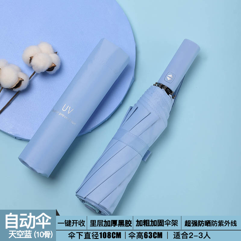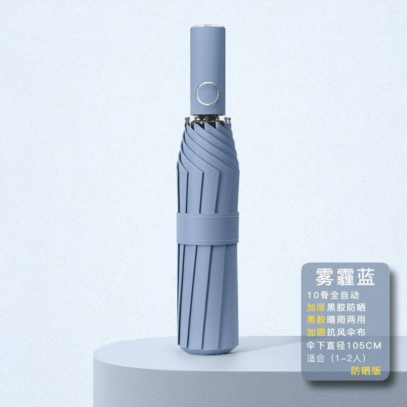 • 10 뼈 자동 업그레이드 합금 우산대 검정 고무 우산-헤이즈 블루