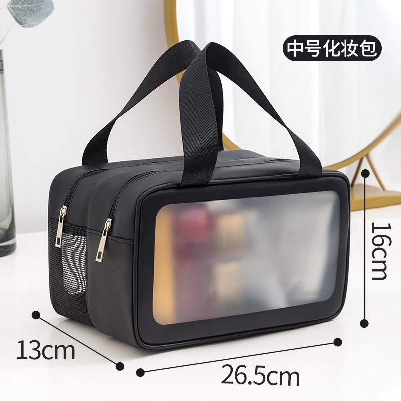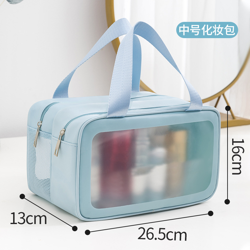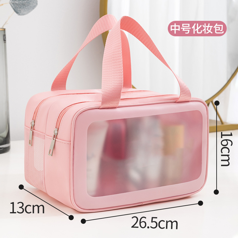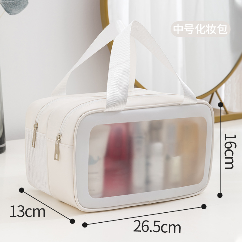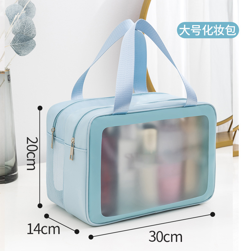 PU 더블 레이어 화장품 가방 대용량 다기능 건식 및 습식 분리 세면 용품 가방 여행 필수 휴대용 휴대용 보관 가방스토어 가기