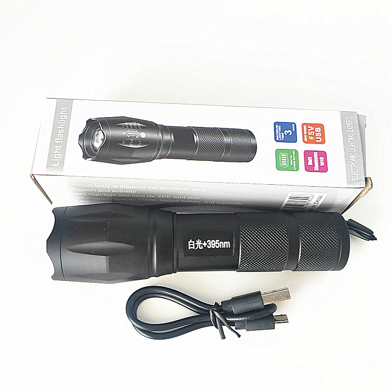 亲,以上手电筒是铝合金内置充电锂电池手电筒,电池容量1200mah,手电筒灯光是用xpe灯珠,有单个395紫光灯珠的,也有白光+395紫光灯珠的,手电筒是内置锂电池,内置电池是每个光源档位都是一档,手电筒长12.4CM(拉伸后长13.5CM),头部宽3CM,尾部宽2.5CM,单个手电筒重115克左右,套装重130克左右,一件200套,一件重量27公斤左右,外箱尺寸40*30*40CM,谢谢您的光临!