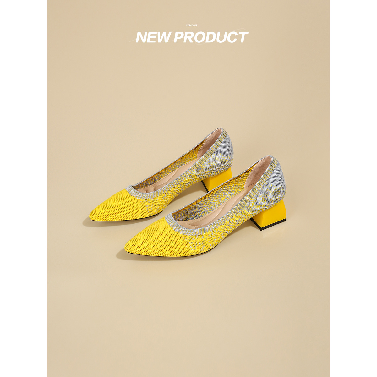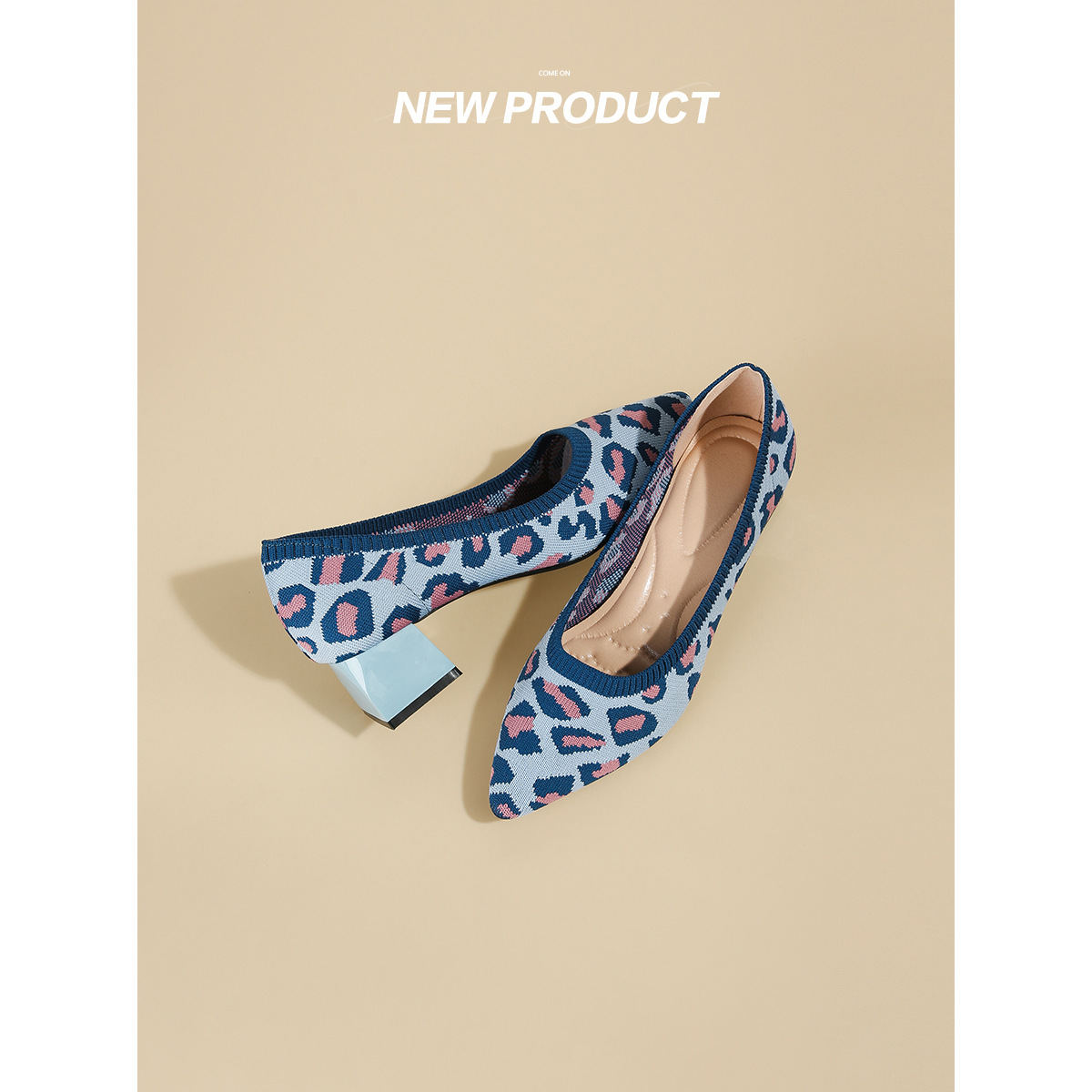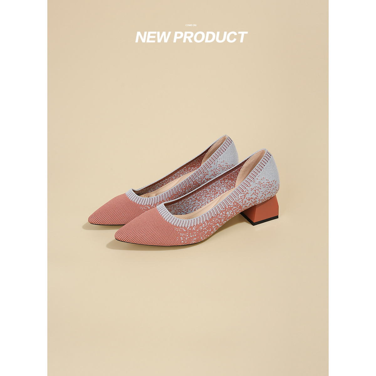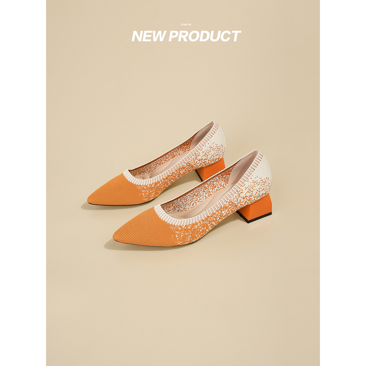 두꺼운 굽 공주 신발 2022 새로운 별이 빛나는 그라디언트 니트 뾰족한 중간 굽 싱글 레이어 신발 여성용 크로스 보더 대외 무역 하이힐 플라잉 짠스토어 가기