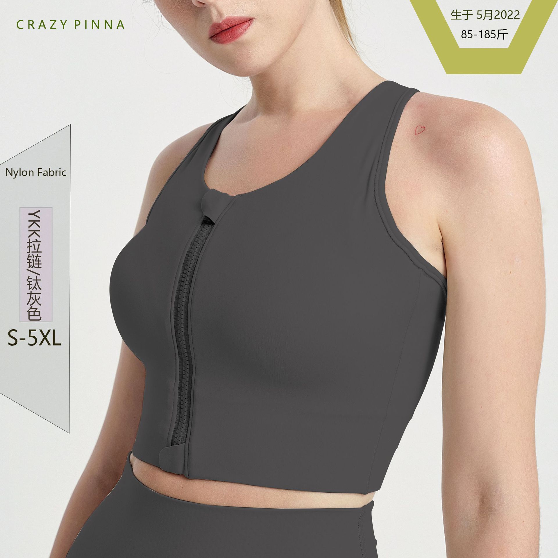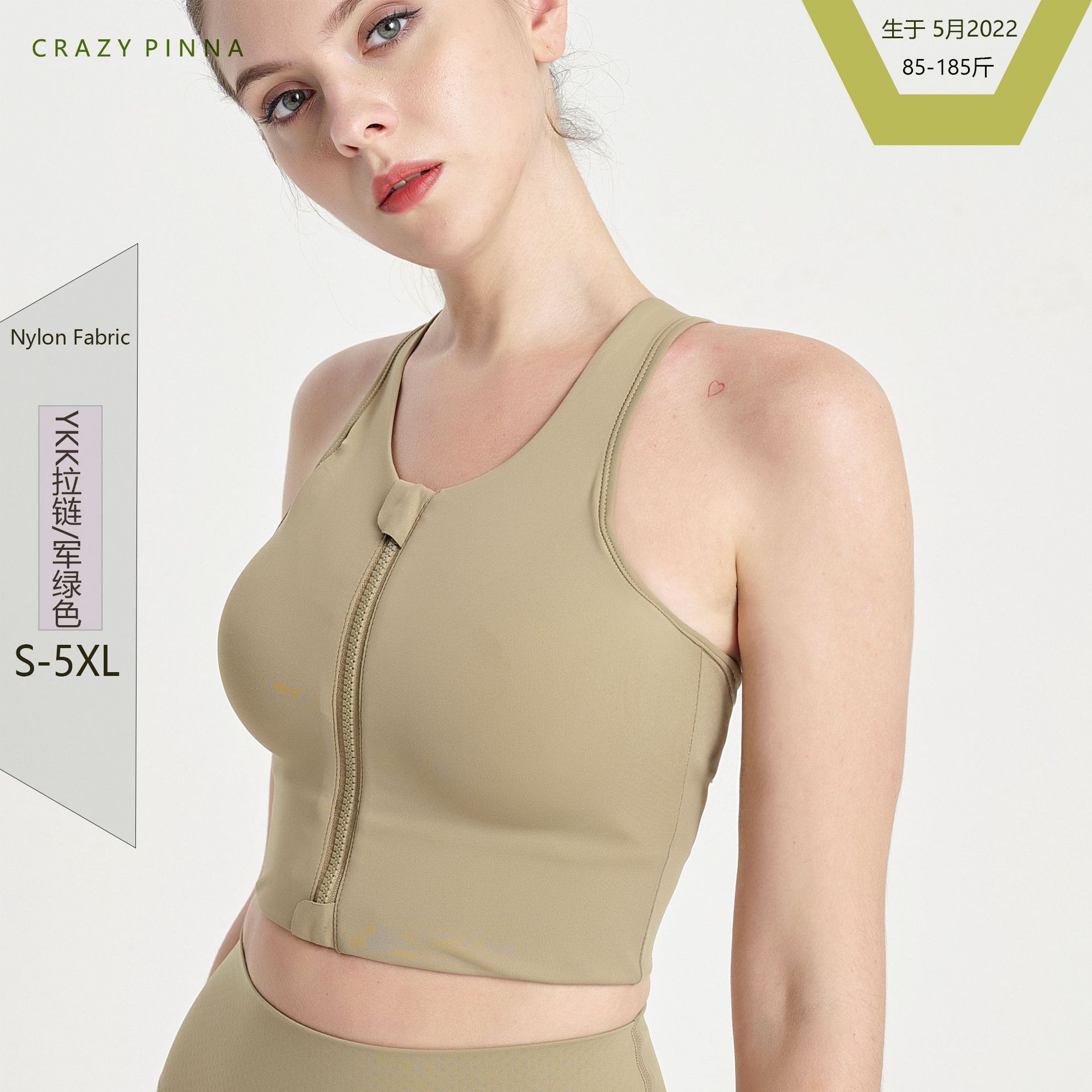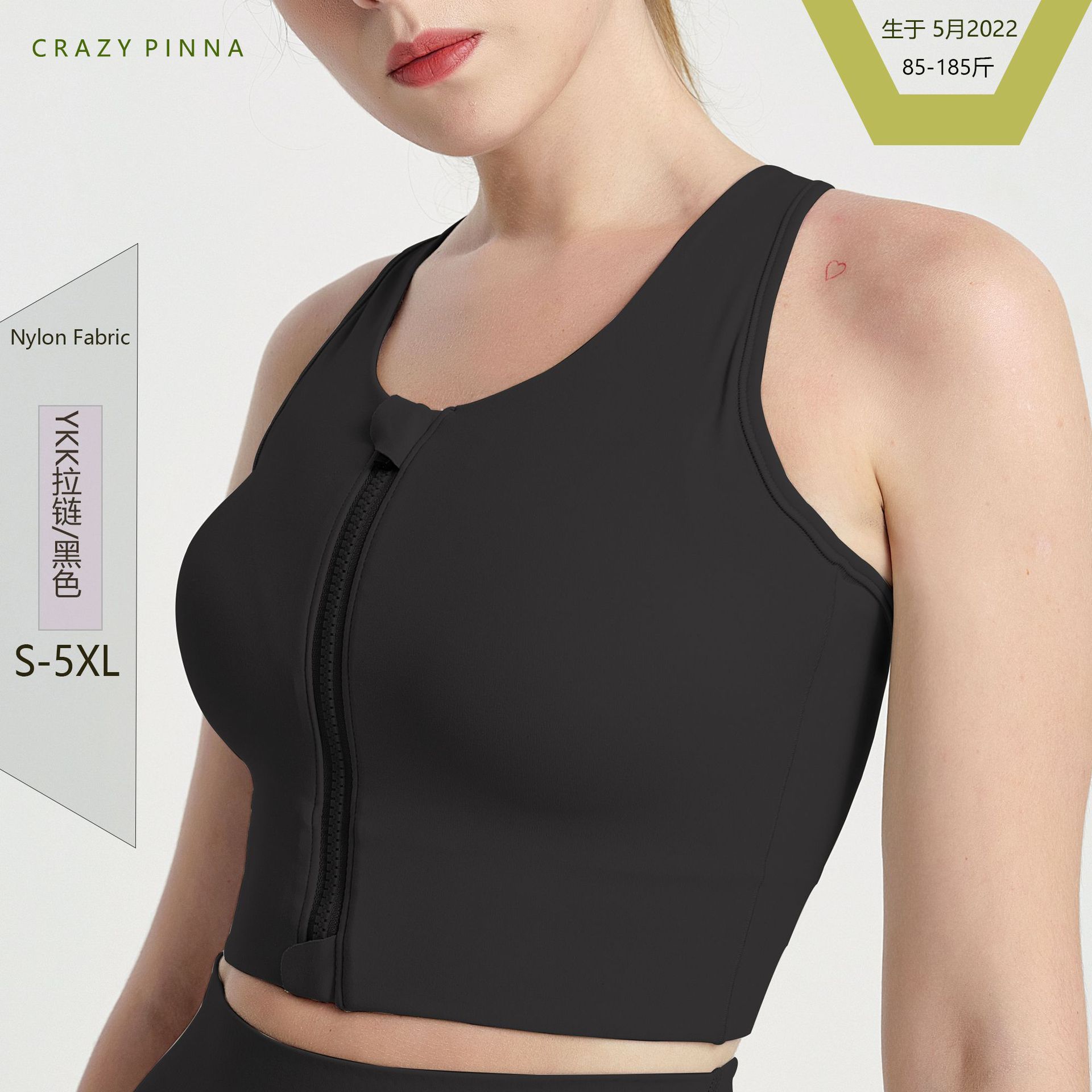마야 비 패딩 고강도 원피스 충격 방지 조끼 가슴 패드 전면 지퍼 스포츠 브라 플러스 사이즈 요가 속옷