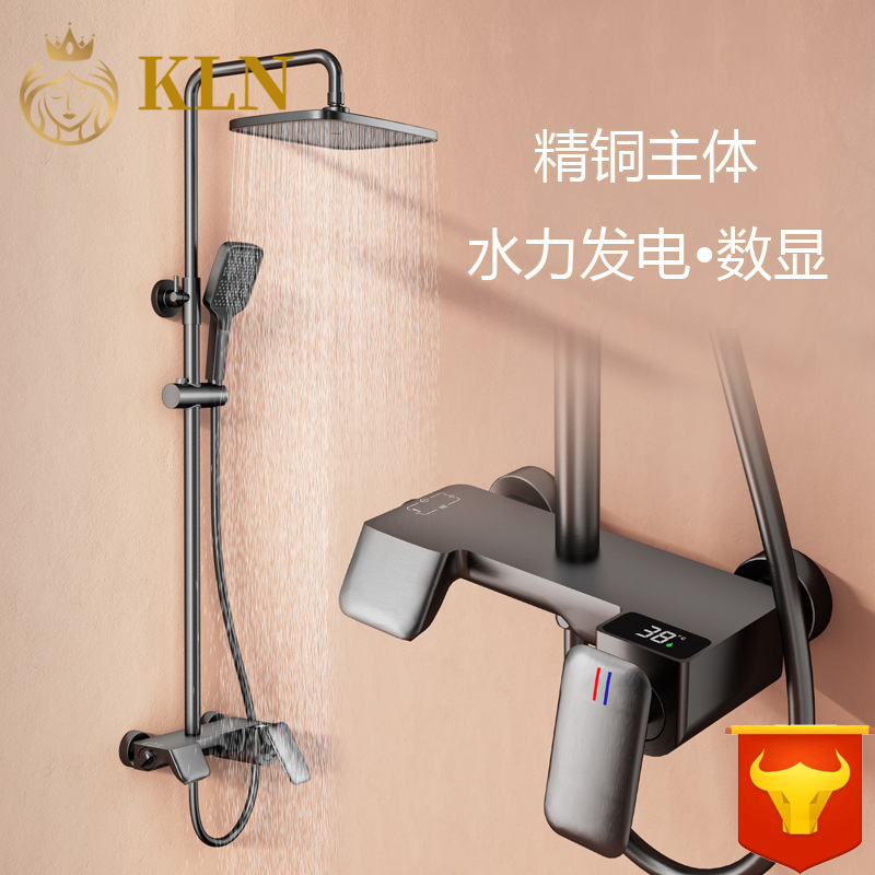 간단한 두 번째 기어 탑 스프레이 세 번째 기어 샤워 세트 디지털 디스플레이 고급 구리 비 목욕 골드 파크슨 욕실 019