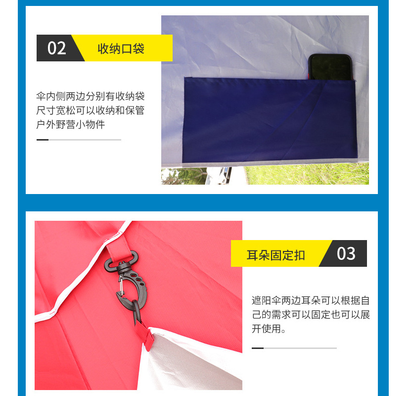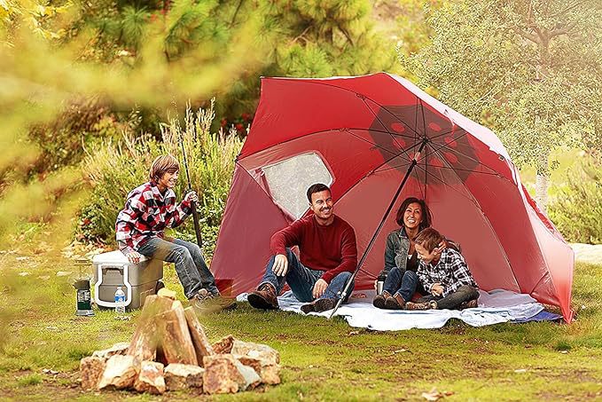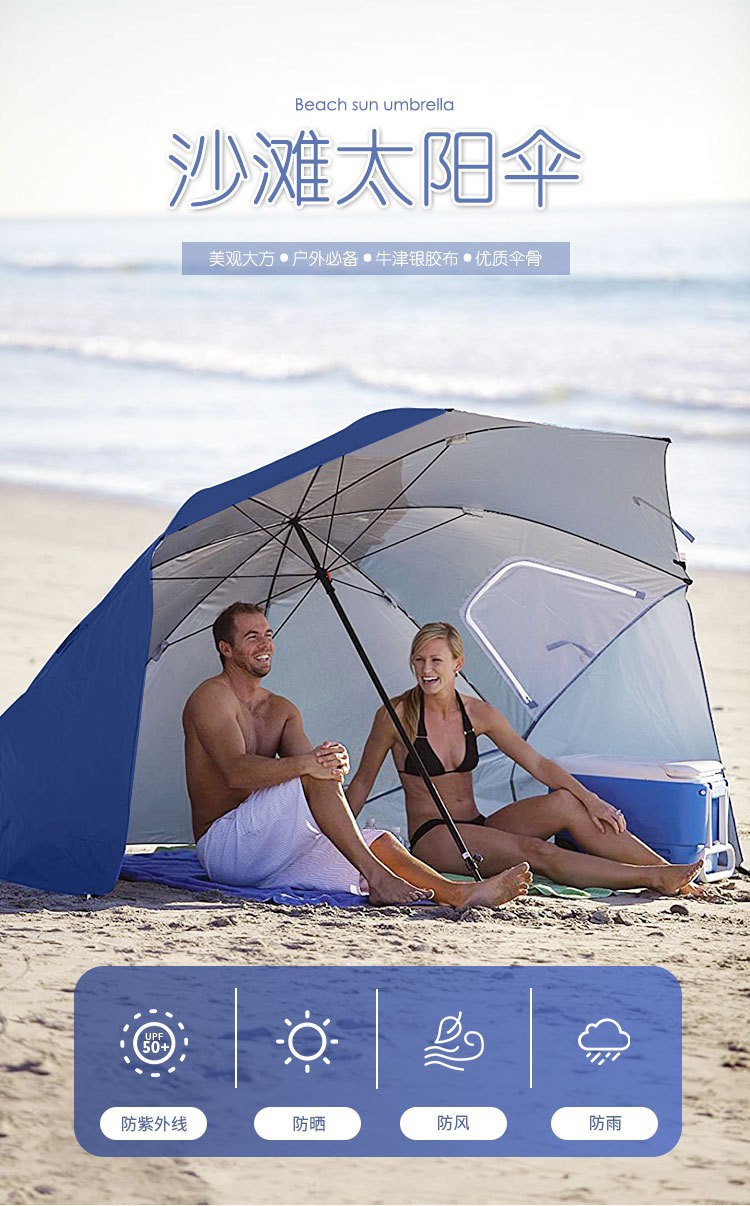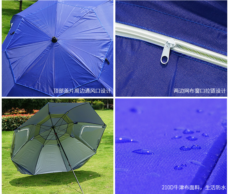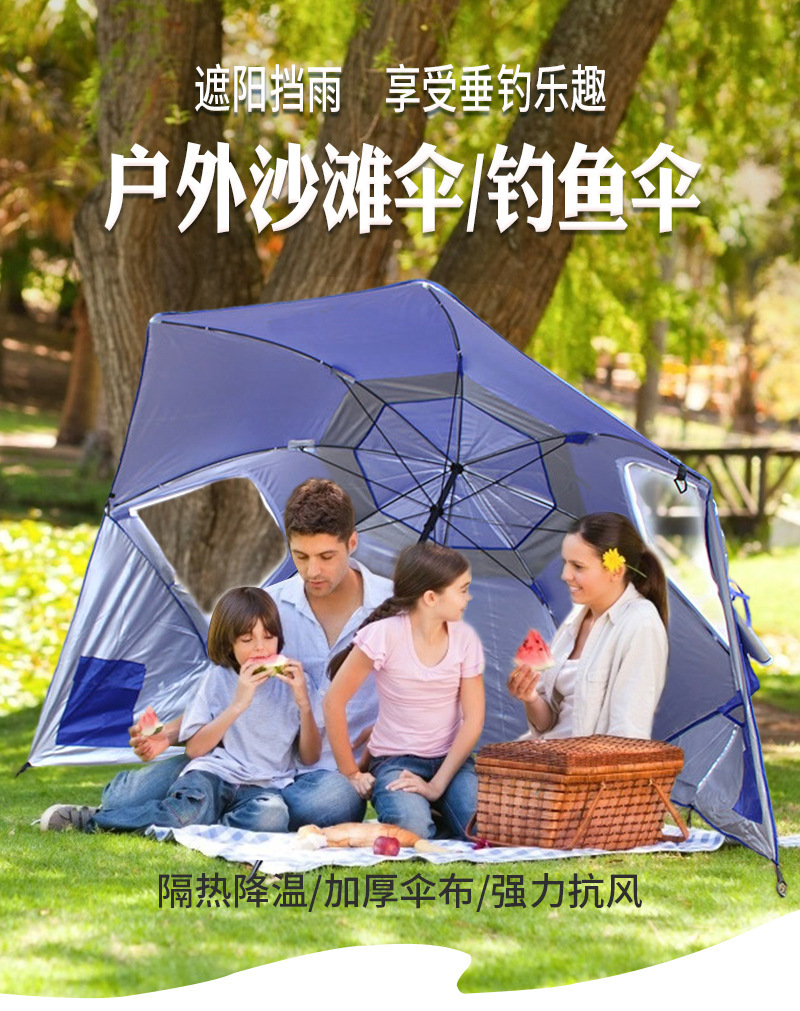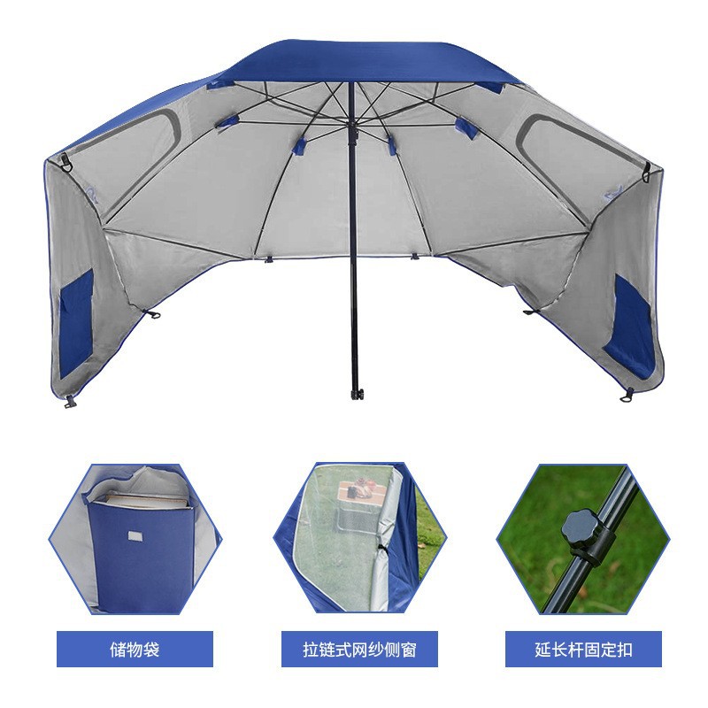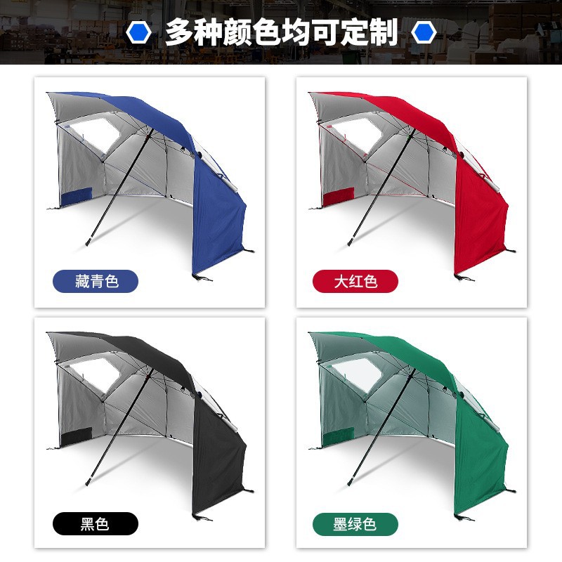 2.4m 야외 캠핑 파라솔, 메쉬 창문이 있는 휴대용 이중 용도 해변 텐트 우산, 자외선 차단스토어 가기
