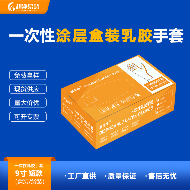 利洁净一次性涂层乳胶手套(支持定制  袋装/盒装)
