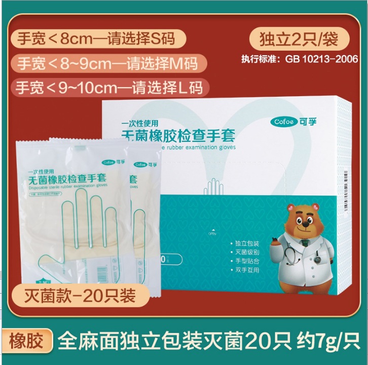 코르푸 일회용 멸균 고무 장갑 위생 가정용 개별 포장 2개/가방 20/상자