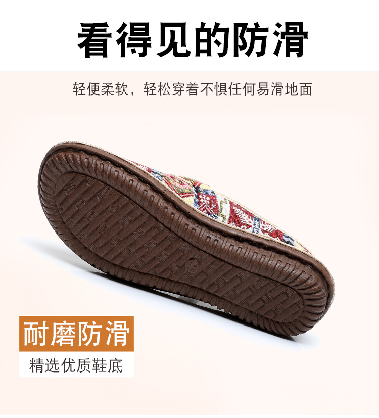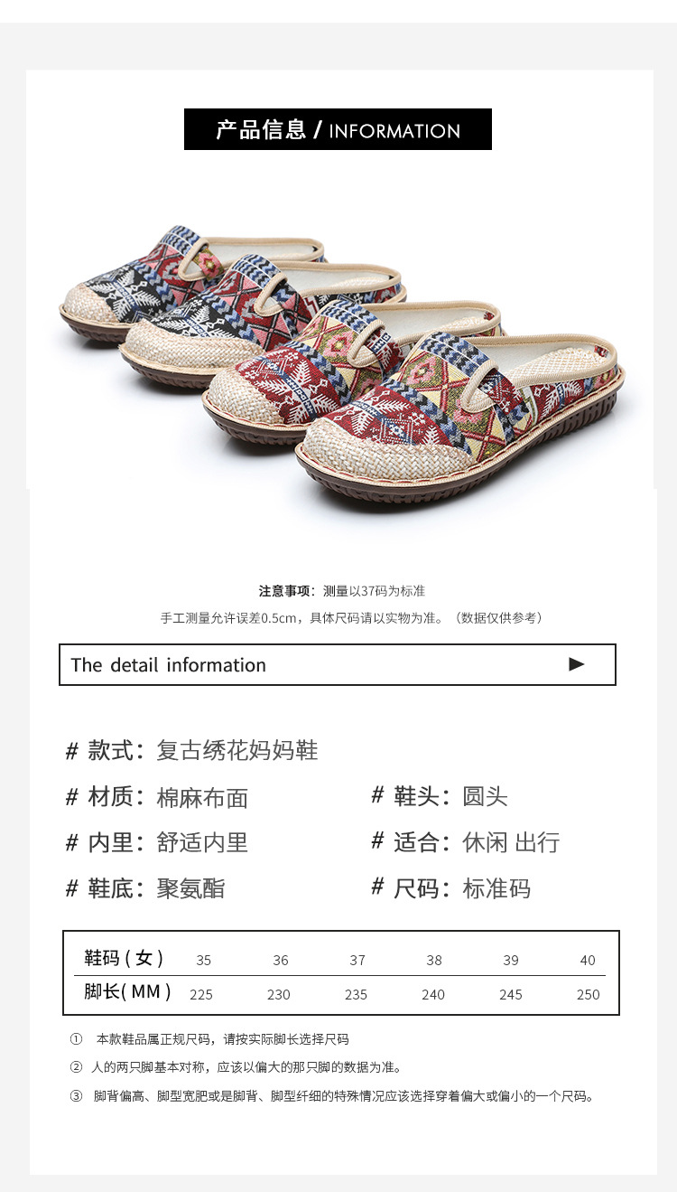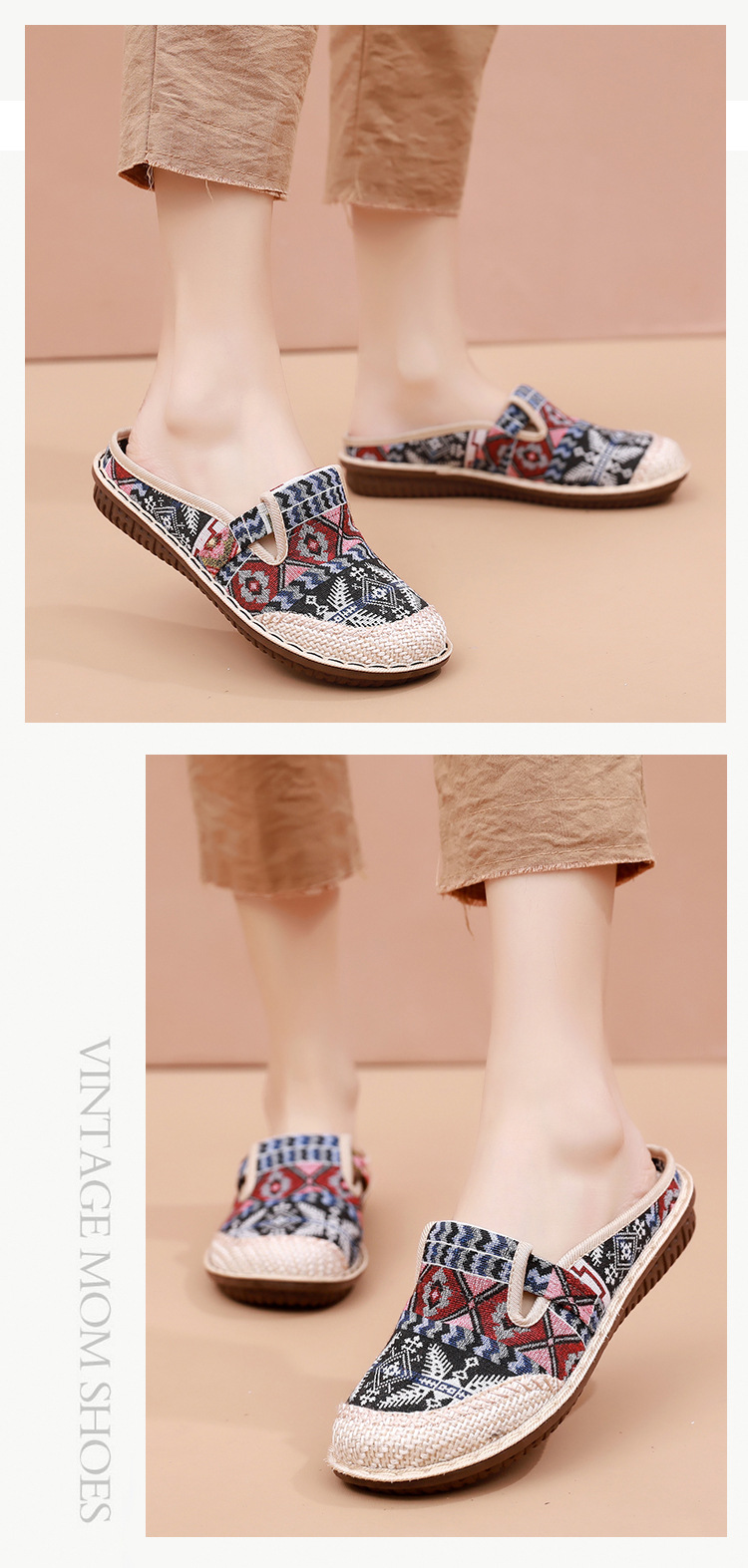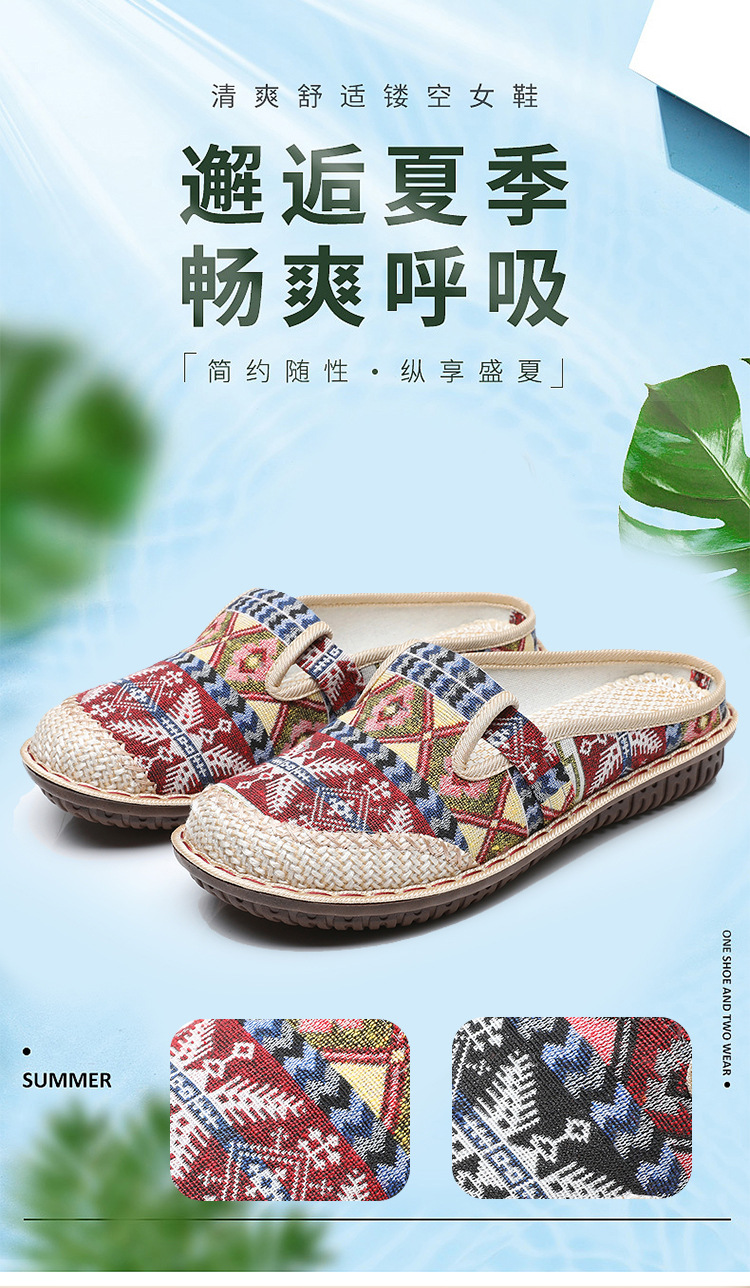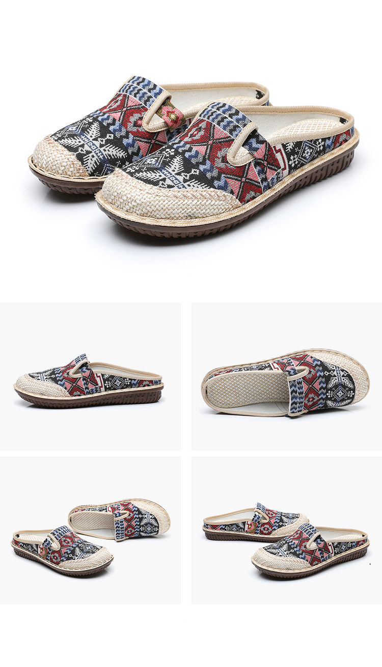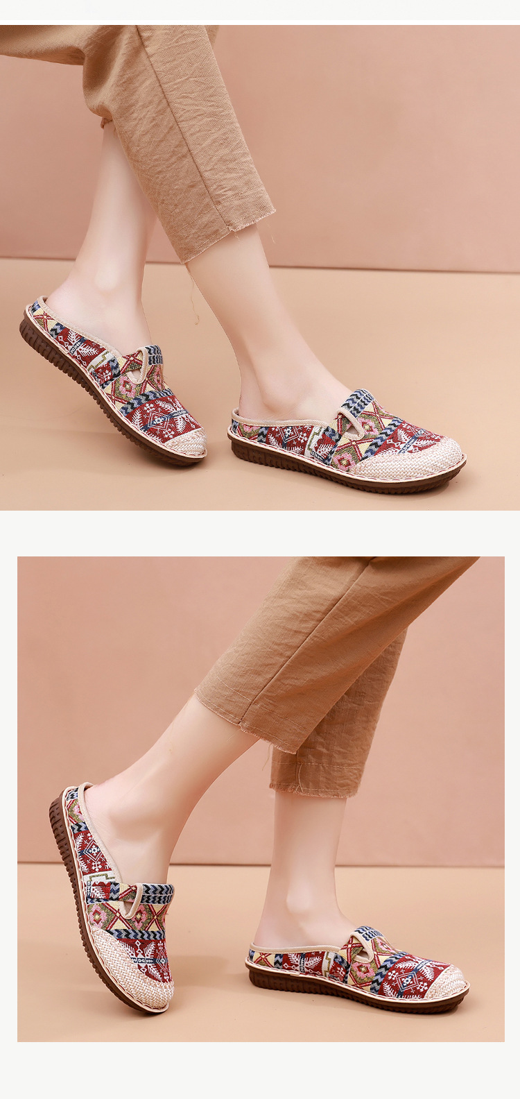 2024 새로운 여름 민족 스타일 린넨 복고풍 민족 스타일 신발 플랫 편안한 여성 슬리퍼 겉옷 천 신발