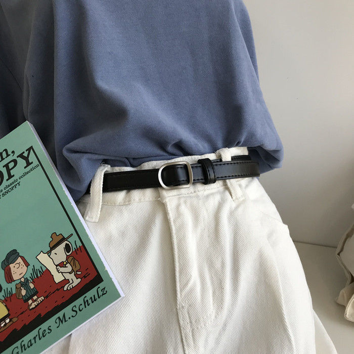 블랙 가죽 벨트 여성용 레트로 벨트 다용도 청바지 장식 벨트 고급스러운 한국 스타일 얇은 벨트 한국 스타일 레트로스토어 가기