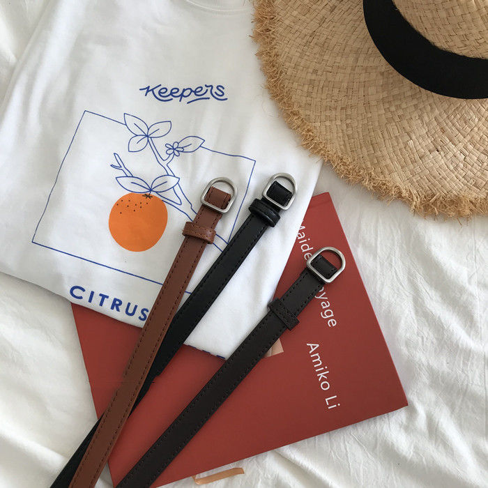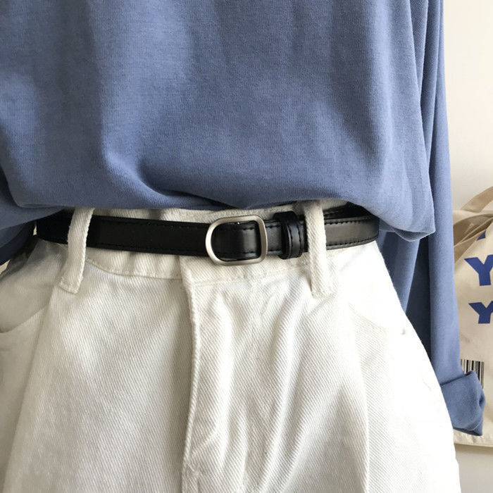 블랙 가죽 벨트 여성용 레트로 벨트 다용도 청바지 장식 벨트 고급스러운 한국 스타일 얇은 벨트 한국 스타일 레트로