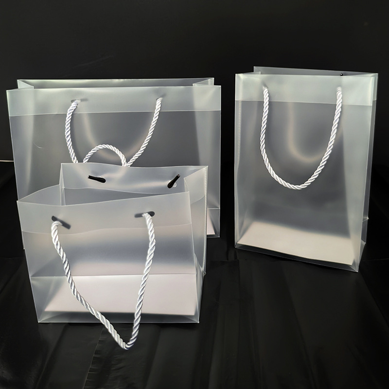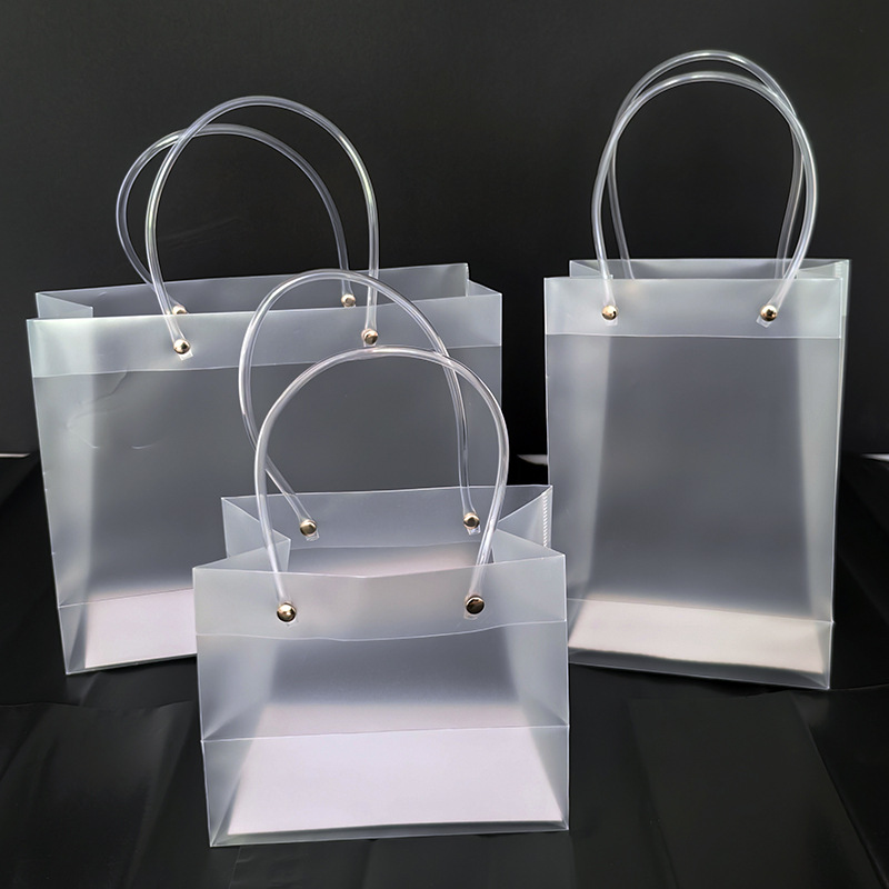 투명 토트백 PVC 플라스틱 재고 선물 가방 pp 가방 젖빛 선물 가방 의류 쇼핑 핸드 백 인쇄스토어 가기