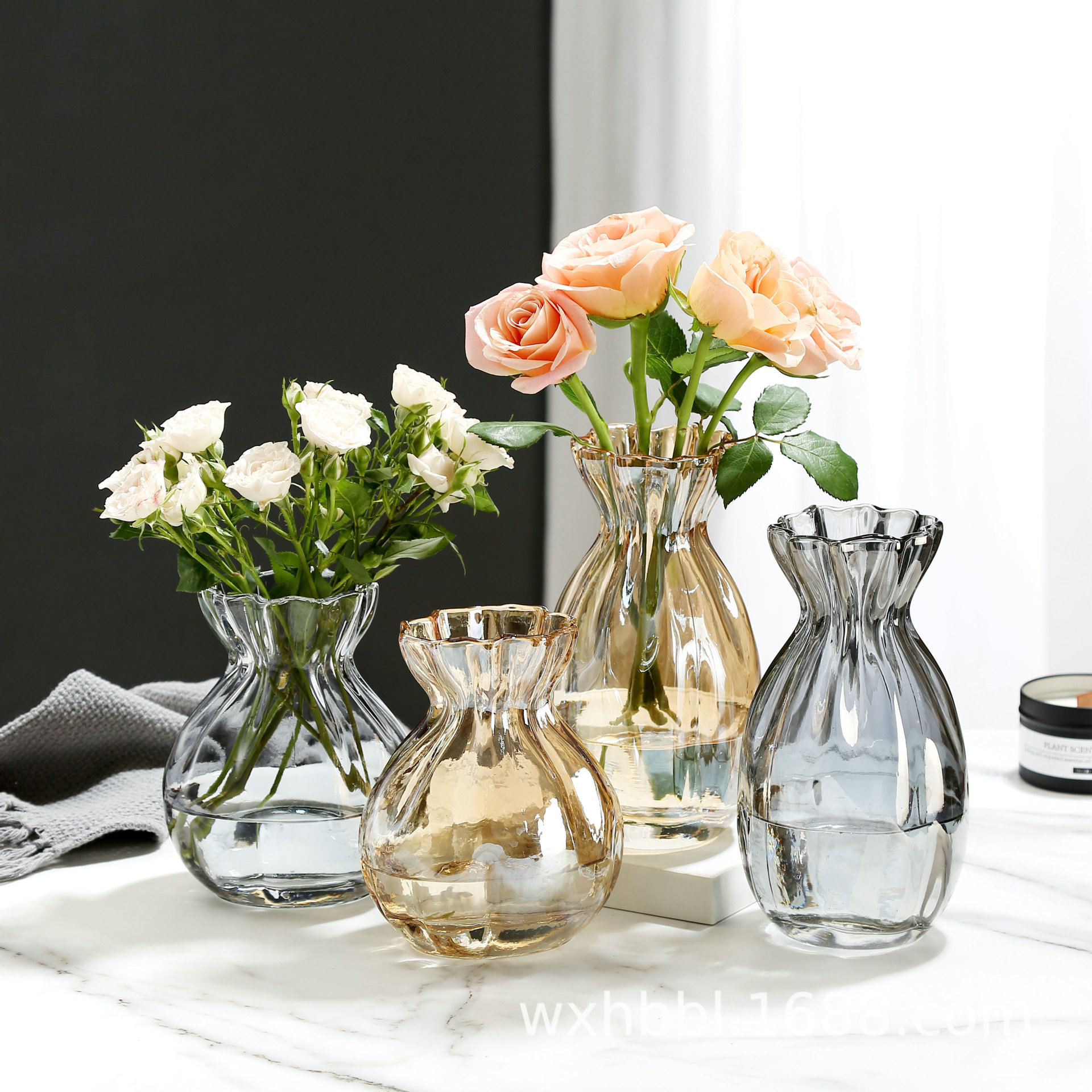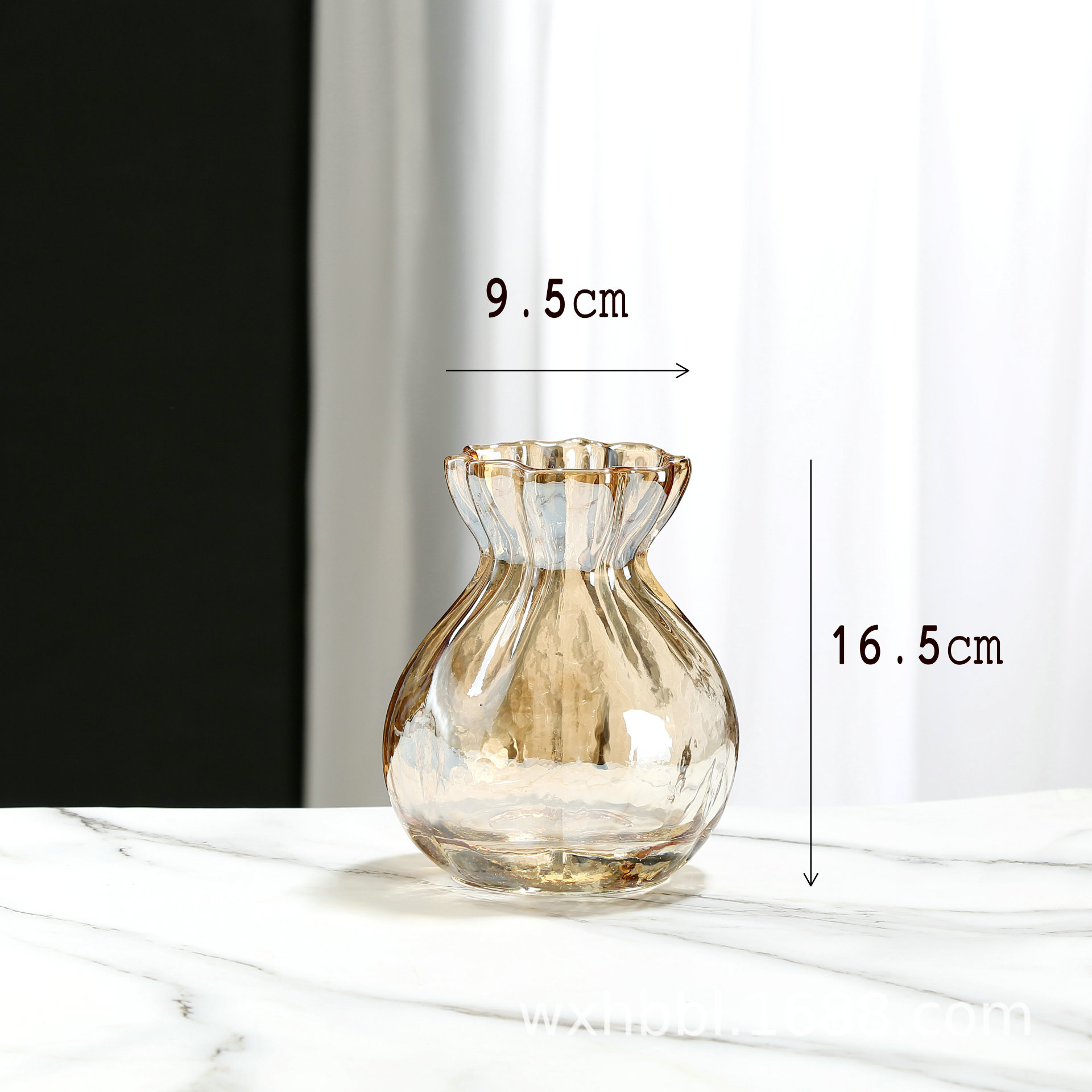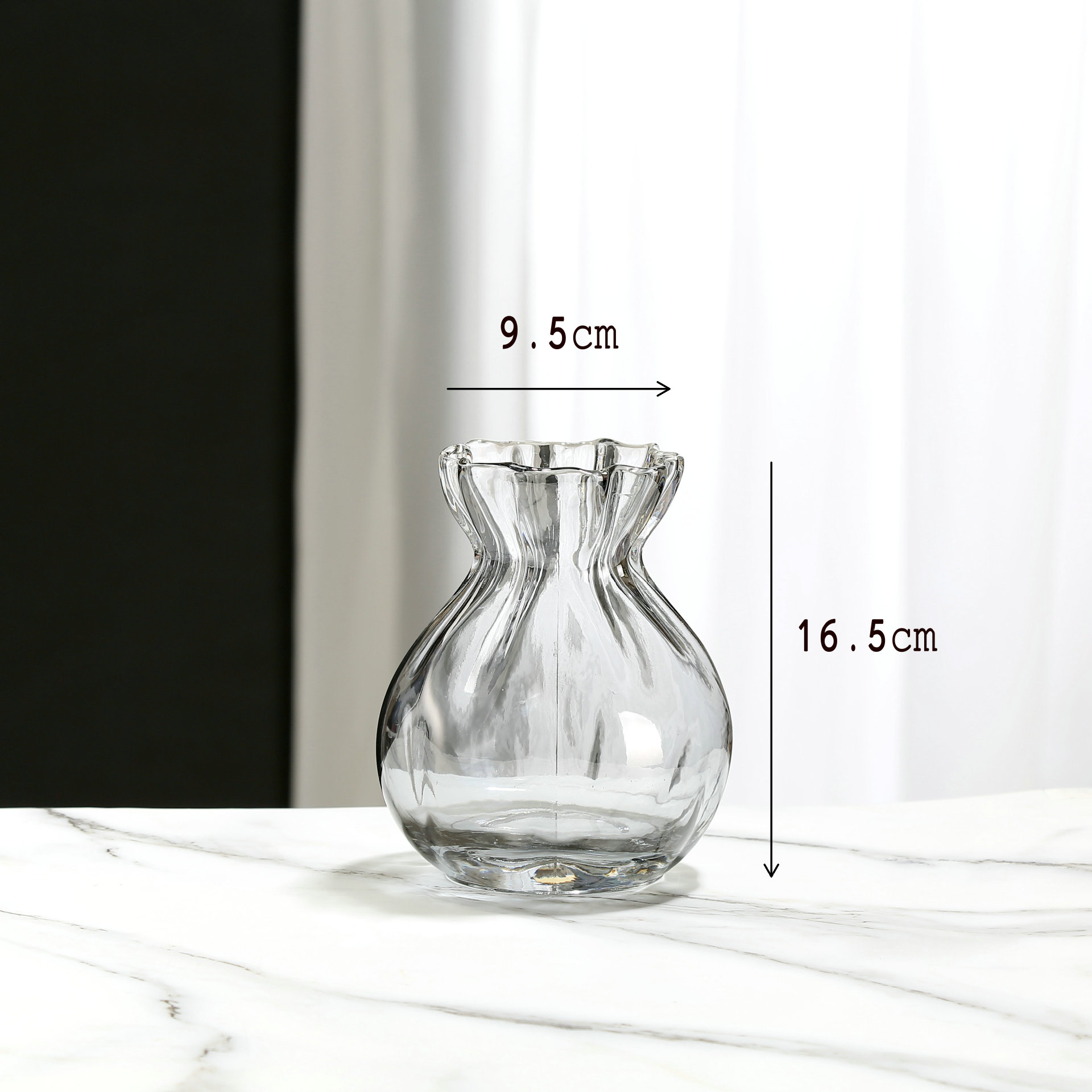 도매 새로운 중국 간단한 작은 신선한 행운의 가방 투명 유리 꽃병 수경 꽃 장식 장식품