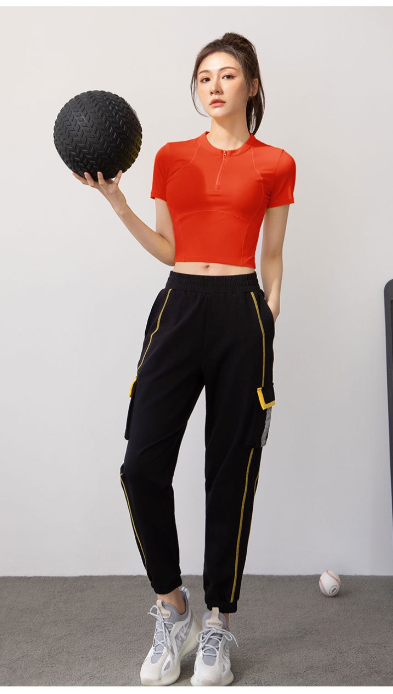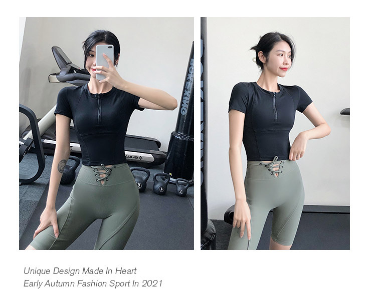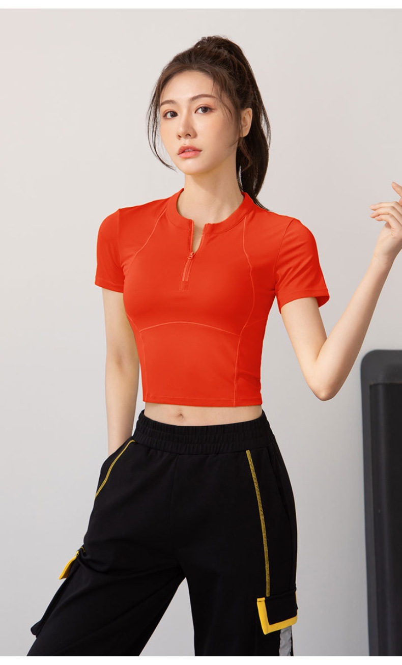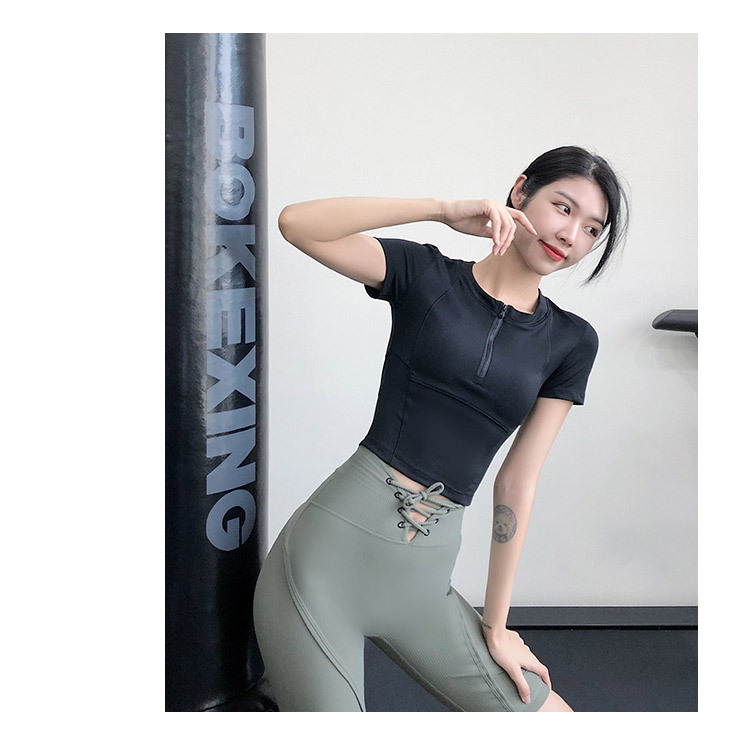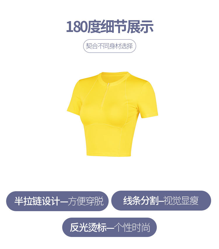 여름 얇은 하프 지퍼 피트니스 의류 여성용 달리기 속건 의류 스포츠 반팔 티셔츠 타이트 요가 탑스토어 가기