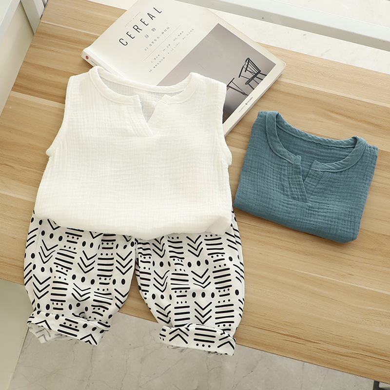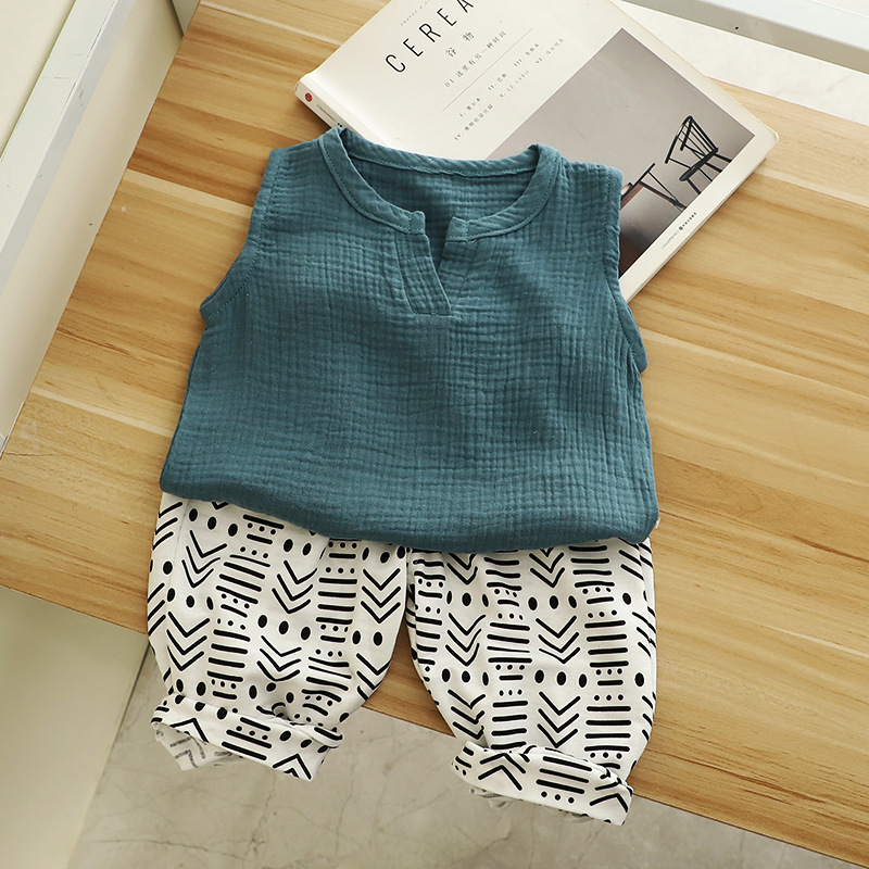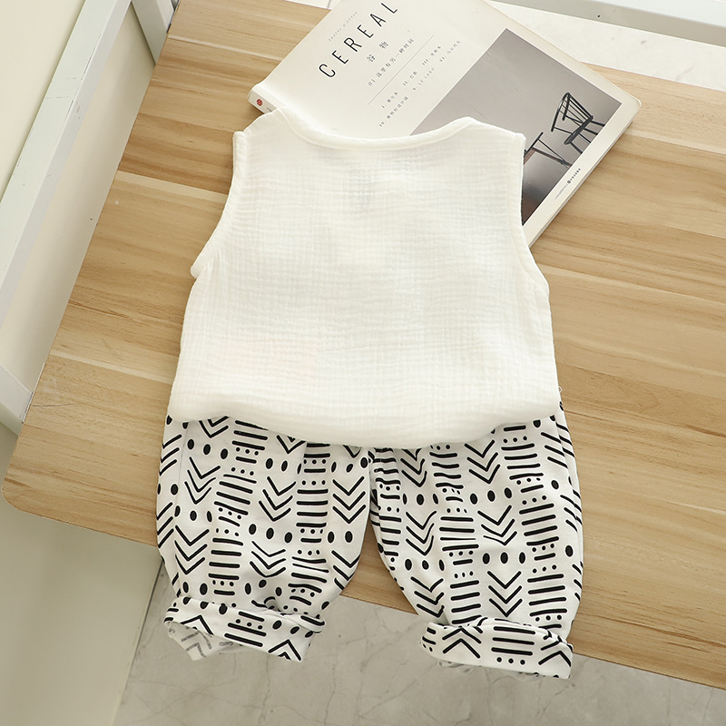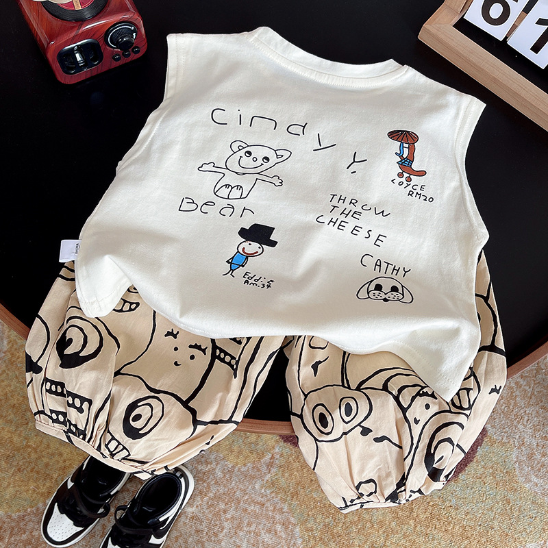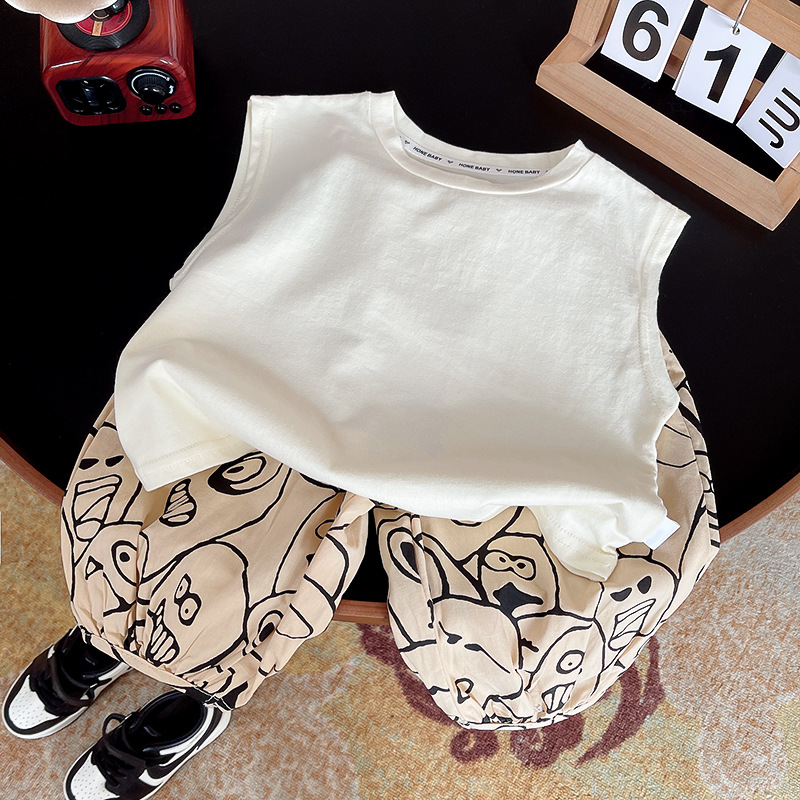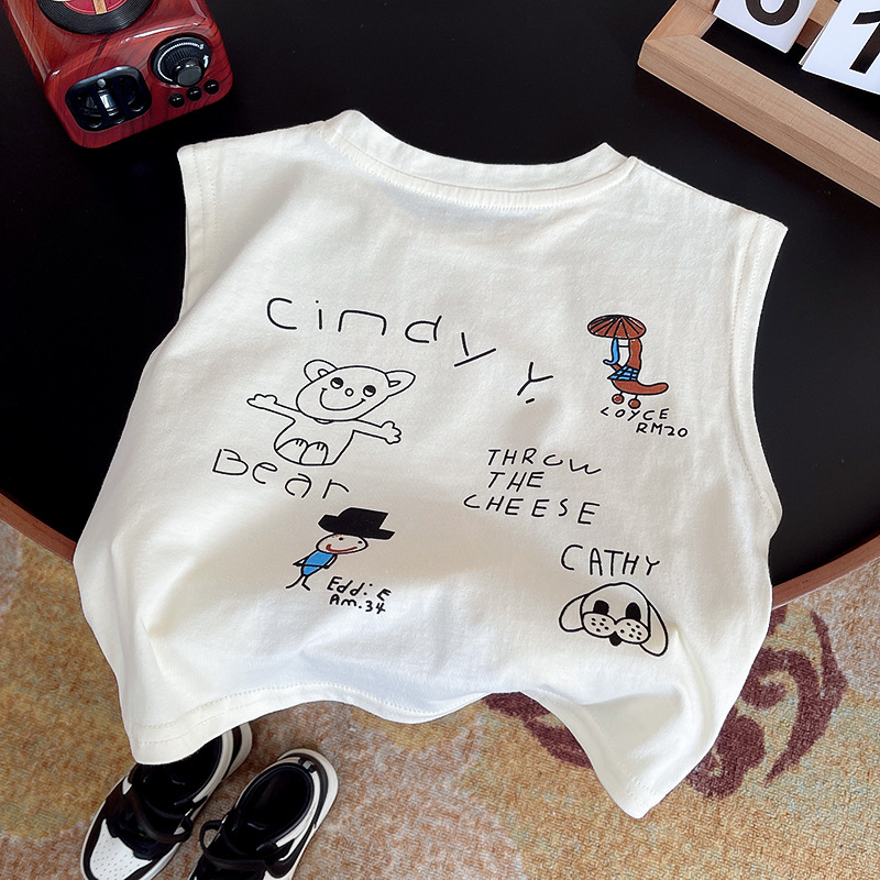2024 새로운 도착 세련된 소년 사이버 기념 유행 옷 어린이 잘 생긴 조끼 여름 옷 소년 여름 민소매 세트
