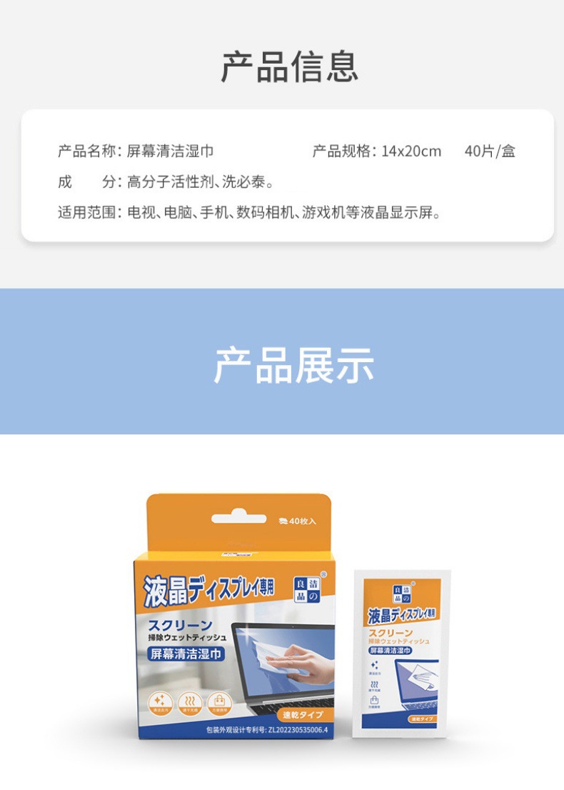 LCD 화면 물티슈 휴대폰 오염 제거 지문 제거 물티슈 휴대용 렌즈 화면 청소 무알콜 물티슈 맞춤 제작